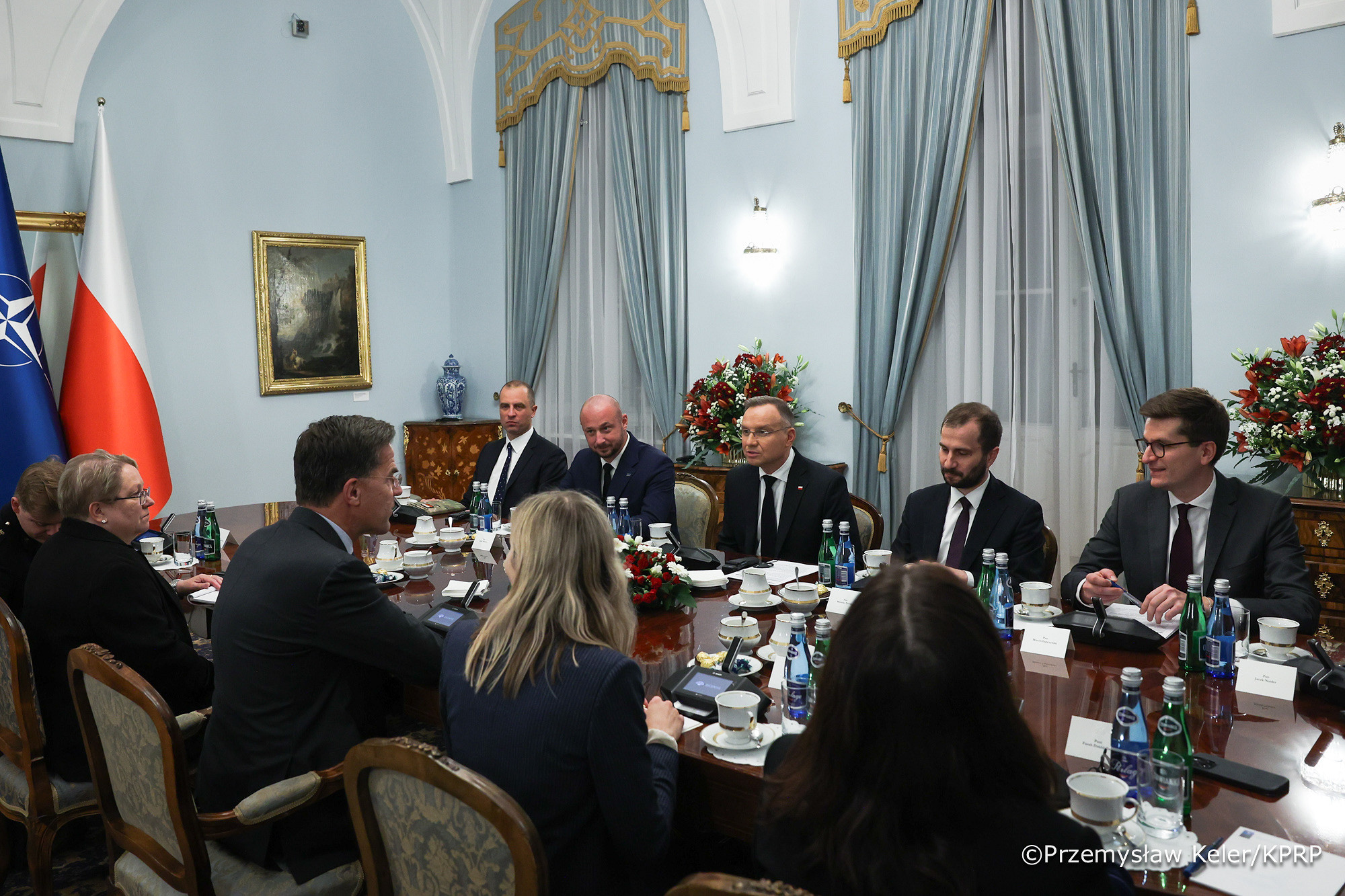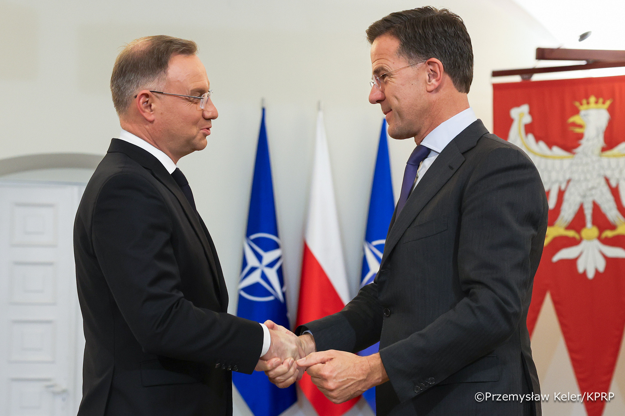 O zwiększeniu produkcji militarnej w Europie, konieczności przedłużenia rurociągów NATO do krajów wschodniej flanki i warunkach przekazania Ukrainie kolejnych polskich myśliwców rozmawiał dziś Andrzej Duda z Sekretarzem Generalnym NATO Markiem Rutte.