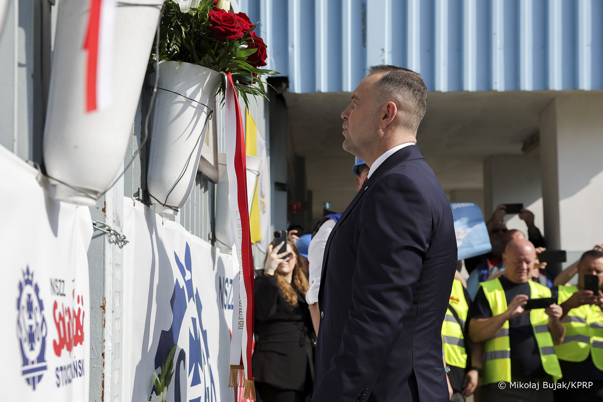 Następnie, wspólnie ze stoczniowcami Prezydent złożył kwiaty przed pamiętną Bramą Nr 2 Stoczni Gdańskiej oraz przed pomnikiem św. Jana Pawła II.