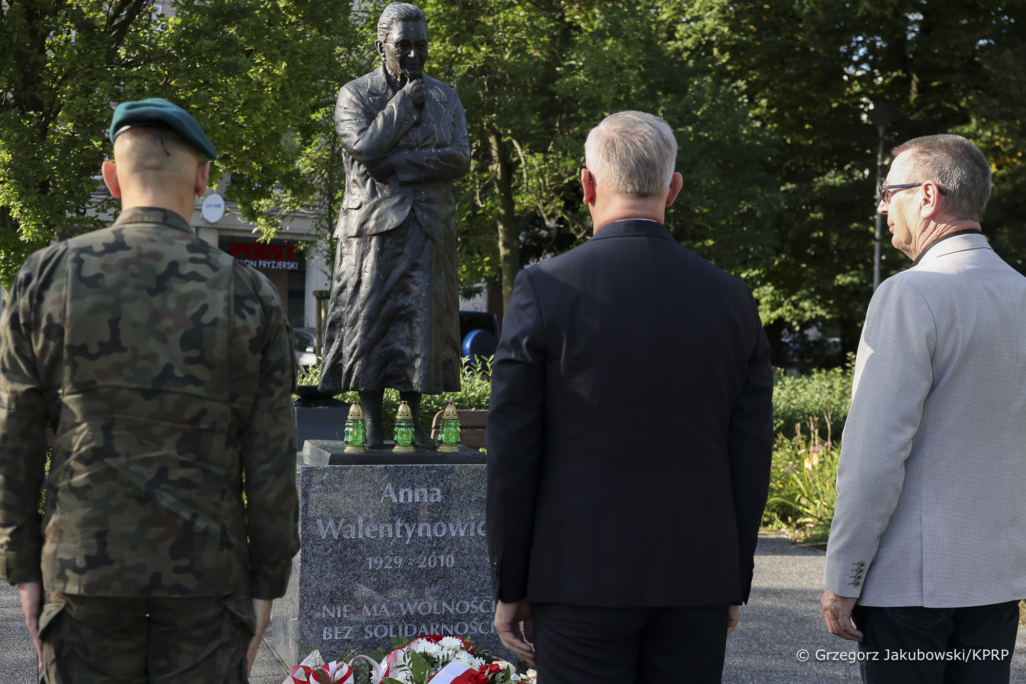 Szef BBN Sławomir Cenckiewicz złożył kwiaty przed pomnikiem oraz na grobie Anny Walentynowicz, jednej z postaci kluczowych dla powstania NSZZ "Solidarność". Ministrowi Cenckiewiczowi towarzyszyli Dyrektor Departamentu Zwierzchnictwa nad Siłami Zbrojnymi w BBN gen. dyw. Adam Rzeczkowski oraz syn legendarnej działaczki antykomunistycznej, Janusz Walentynowicz.
