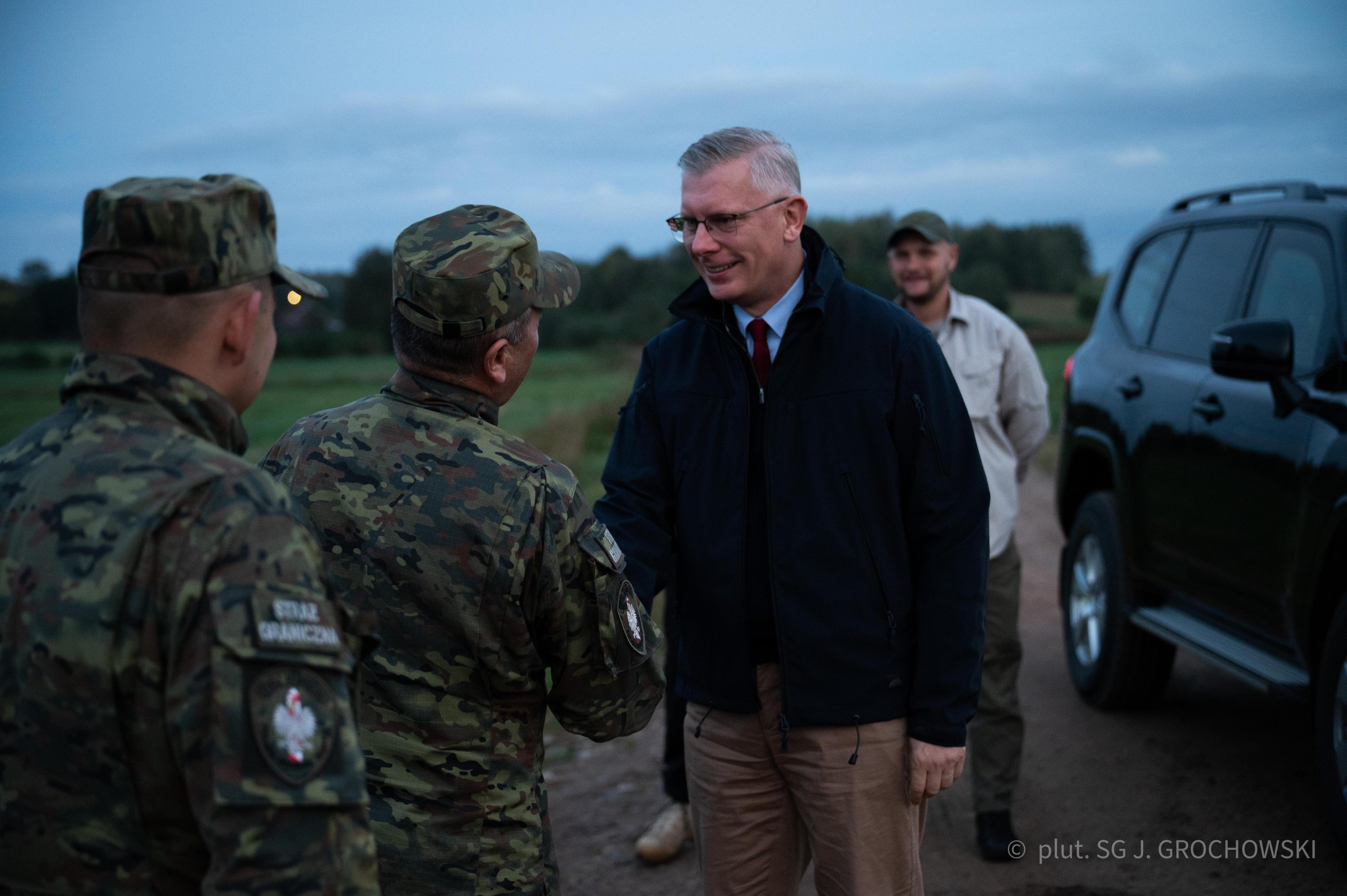 Szef BBN wizytę na polsko-białoruskiej granicy rozpoczął od spotkania z funkcjonariuszami i żołnierzami na pasie granicznym w okolicach miejscowości Ozierany Małe. Na tej wysokości kończy się zapora fizyczna, a zabezpieczenia elektroniczne biegną dalej wzdłuż rzeki Świsłocz. Następnie udał się w miejsce stacjonowania Zgrupowania Zadaniowego "Północ", działającego w ramach operacji "Bezpieczne Podlasie".