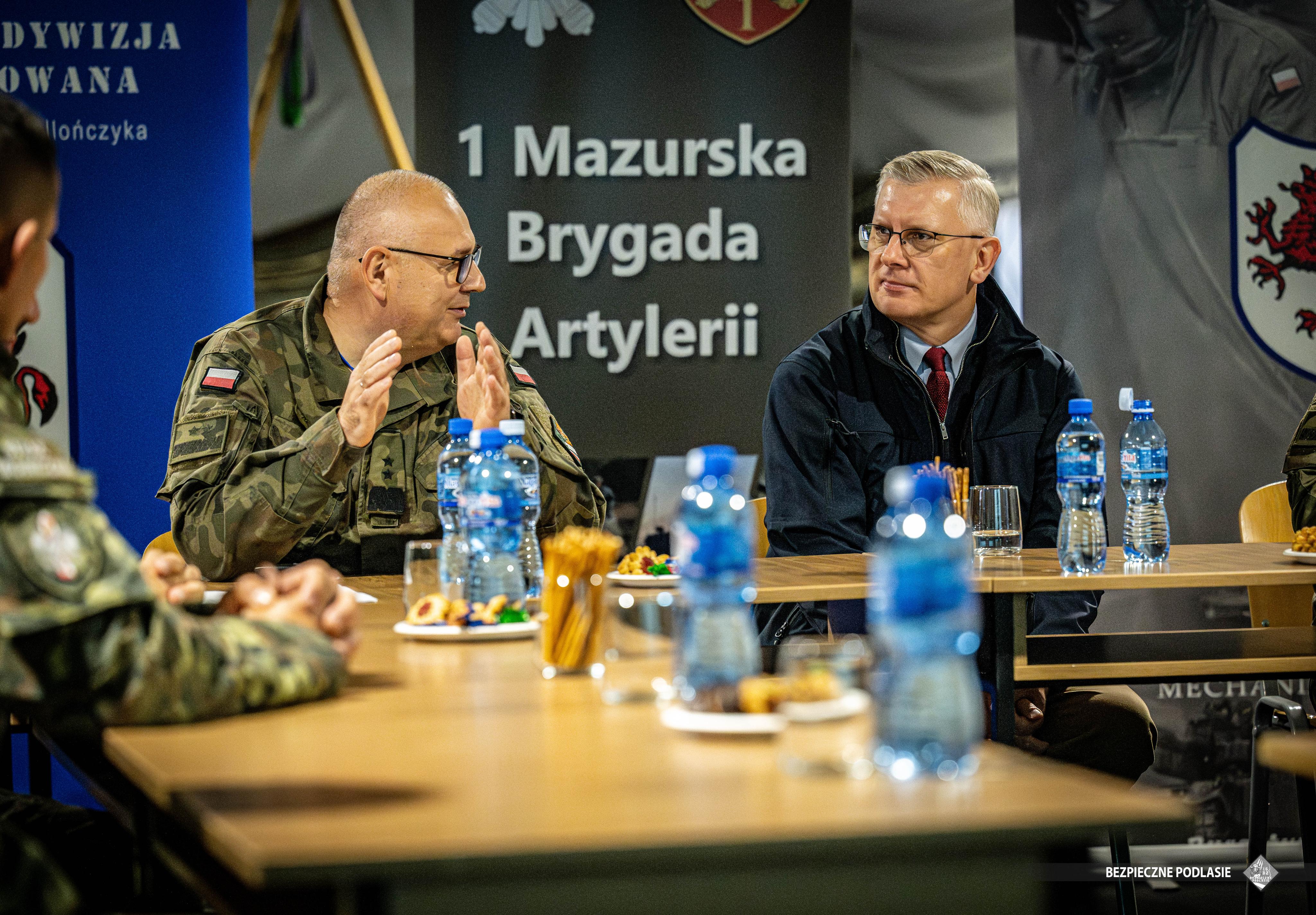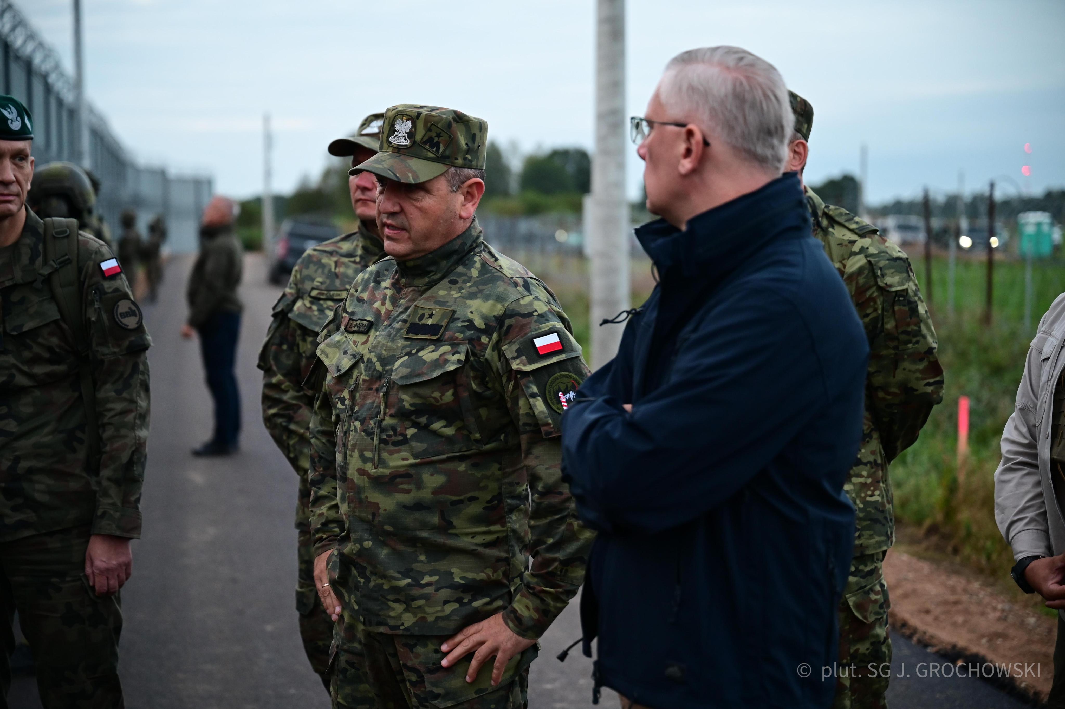 Minister o sytuacji bezpieczeństwa w rejonie granicy z Białorusią, jej fizycznych i elektronicznych zabezpieczeniach, taktykach działania służb i wojska w obliczu presji migracyjnej organizowanej przez białoruskie i rosyjskie służby, a także metodach działania przemytników i migrantów nielegalnie przekraczających granicę państwową rozmawiał m.in. z gen. bryg. SG Sławomirem Klekotką, Komendantem Podlaskiego Oddziału Straży Granicznej oraz z gen. dyw. Wojciechem Ziółkowskim, Dowódcą 16 Pomorskiej Dywizji Zmechanizowanej.