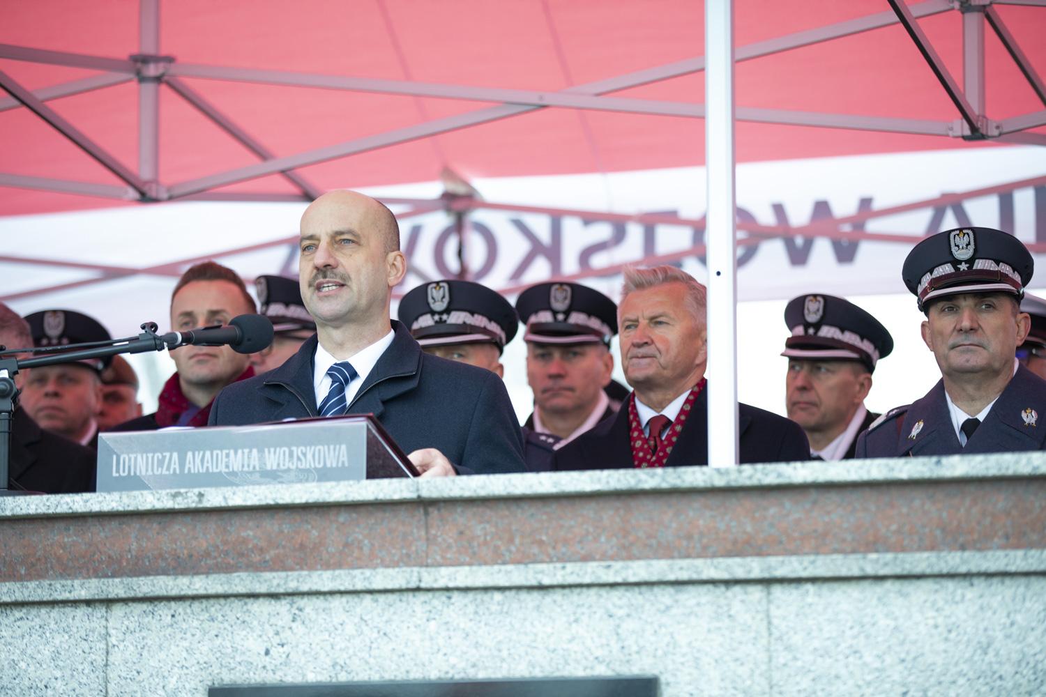 Ukończenie prestiżowej Szkoły Orląt jest powodem do zasłużonej dumy i dowodem osiągnięcia jednego z ważnych etapów życiowej drogi. Jestem jednak pewien, że to tylko początek – punkt wyjścia do kolejnych etapów Państwa wojskowej kariery. Przyjmując szlify oficerskie, biorą Państwo na siebie jednocześnie odpowiedzialność za przyszłość polskiej armii. Znakomita większość z Państwa spełni swoje marzenia o służbie w lotnictwie – zasiadając za sterami samolotów czy śmigłowców lub pracując przy ich obsłudze. Od Państwa wiedzy, umiejętności i nabytego doświadczenia zależeć będą losy Sił Powietrznych.