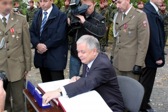Podczas pobytu w 1. Pułku Specjalnym Komandosów Lech Kaczyński odznaczył służących w tej jednostce weteranów misjach zagranicznych medalami Gwiazda Iraku i Gwiazda Afganistanu, obserwował pokaz znajdujących się w Lublińcu sprzętu oraz uzbrojenia, a także spotkał się z żołnierzami i ich rodzinami.