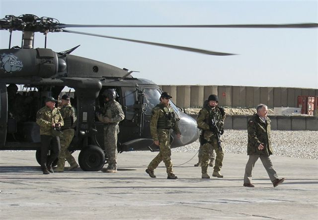 Po zakończeniu spotkania na lotnisku Prezydent RP miał udać się do polskiej bazy w prowincji w Ghazni. Pierwsza próba przelotu na miejsce amerykańskim śmigłowcem została jednak przerwana z powodu trudnych warunków atmosferycznych. Jak podkreślił szef BBN Aleksander Szczygło, Prezydentowi Lechowi Kaczyńskiemu szczególnie zależało, żeby odwiedzić stacjonujących w Ghazni żołnierzy i podjął on decyzję o przełożeniu pierwotnego terminu powrotu delegacji do kraju tak, aby możliwe było podjęcie ponownej próby dotarcia do naszej bazy. Ostatecznie pogoda poprawiła się na tyle, że druga próba przelotu zakończyła się sukcesem i Zwierzchnik Sił Zbrojnych mógł złożyć wizytę stacjonującym w Ghazni żołnierzom Polskiego Kontyngentu Wojskowego.