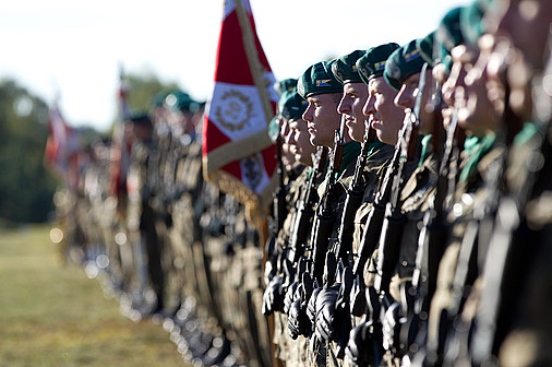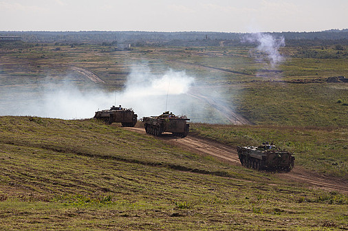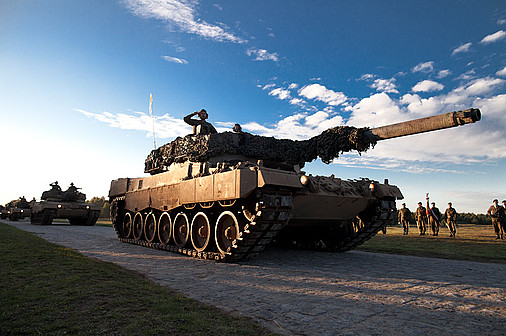 Prezydent obejrzał również defiladę oddziałów ćwiczących na poligonie w Drawsku Pomorskim, w której wzięło udział 60 ciężkich pojazdów i dziewięciu śmigłowców.