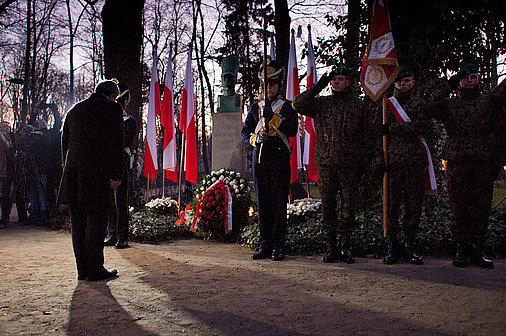 Prezydent powiedział, że rocznica przypomina, iż każdy może stanąć wobec trudnego wyboru. Podkreślił, że uczestnicy spisku, kandydaci na oficerów, którzy rozpoczęli powstanie listopadowe i próbowali zgładzić "tyrana, symbol obcej władzy, zniewolenia i pozbawienia Polski wolności", naczelnego wodza, wielkiego księcia Konstantego, dokonali słusznego wyboru. - W noc listopadową rację mieli polscy podchorążowie. I na tej tradycji Polska buduje polskie siły zbrojne - powiedział prezydent. Zaznaczył, że także dzisiaj każdy żołnierz powinien mieć przekonanie, że służy Polsce i narodowi; "ale gdy ma się własne państwo, trzeba być wiernym przysiędze, wiernym zasadom, aż do końca".