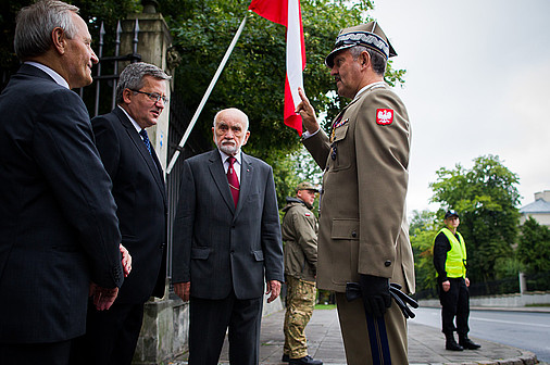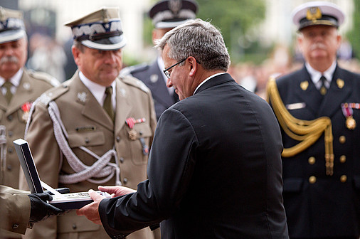 - To piękny zwyczaj, by 15 sierpnia żegnać odchodzących generałów i witać nowo awansowanych – powiedział B. Komorowski podczas uroczystości. Podkreślił, że uroczystość wręczenia odznaczeń ma charakter symboliczny, „bo przecież zasłużonych żołnierzy jest o wiele więcej”.
