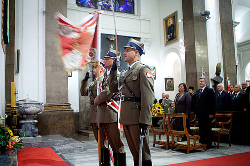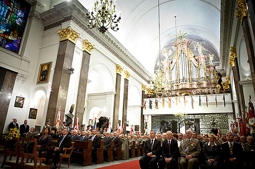 Następnie wraz z małżonką udał się na mszę św. za Ojczyznę do Katedry Polowej Wojska Polskiego. W nabożeństwie uczestniczyli także m.in. szef BBN, szef MON i kierownictwo resortu, szef SG WP, dowódcy rodzajów sił zbrojnych, generalicja i kombatanci.