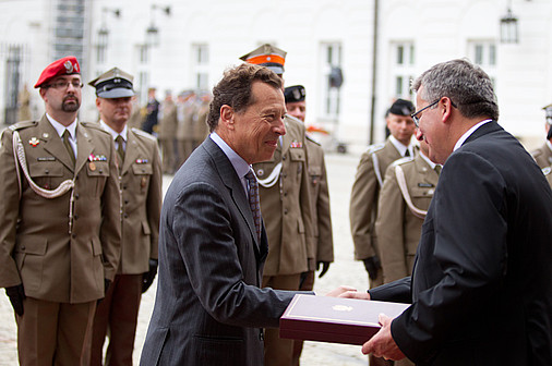Następnie na dziedzińcu Pałacu Prezydenckiego prezydent wręczył odznaczenia państwowe oraz nadał dziewięciu oficerom stopnie generalskie. Informował o tym na ubiegłotygodniowym briefingu prasowym szef Biura Bezpieczeństwa Narodowego minister S. Koziej. Jednocześnie prezydent pożegnał generałów kończących zawodową służbę wojskową i wręczył im pamiątkowe ryngrafy.