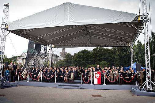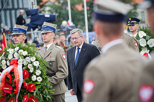 W środę rano prezydent Bronisław Komorowski złożył wieniec przed pomnikiem Marszałka Józefa Piłsudskiego obok Belwederu. Prezydentowi towarzyszyli szef Biura Bezpieczeństwa Narodowego minister Stanisław Koziej, minister obrony narodowej Tomasz Siemoniak, szef Sztabu Generalnego WP gen. Mieczysław Cieniuch oraz dowódca Garnizonu Warszawa gen. bryg. Wiesław Grudziński.
