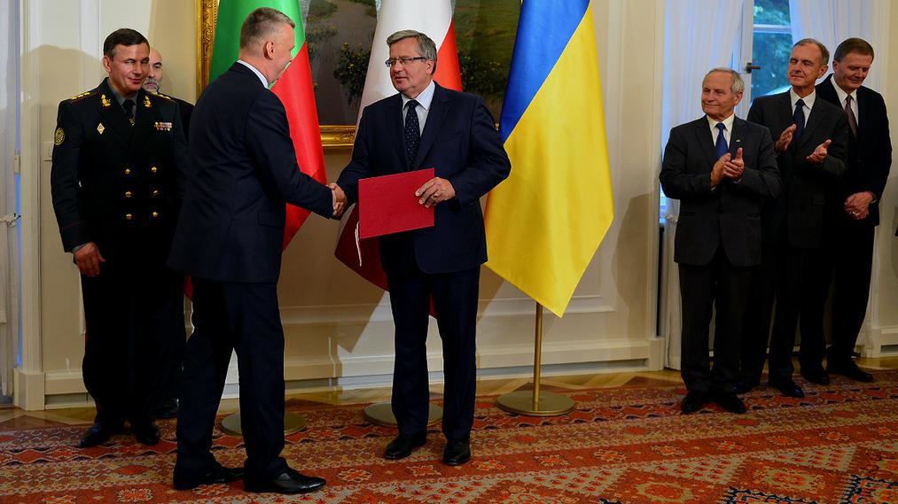 Prezydent Komorowski powiedział podczas uroczystości, że podpisanie międzyrządowej umowy to przejaw naszego wspólnego głębokiego zaangażowania we wzmacnianie bezpieczeństwa i zdolności obronnych w regionie, gdzie - jak powiedział - "zrobiło się niebezpiecznie".