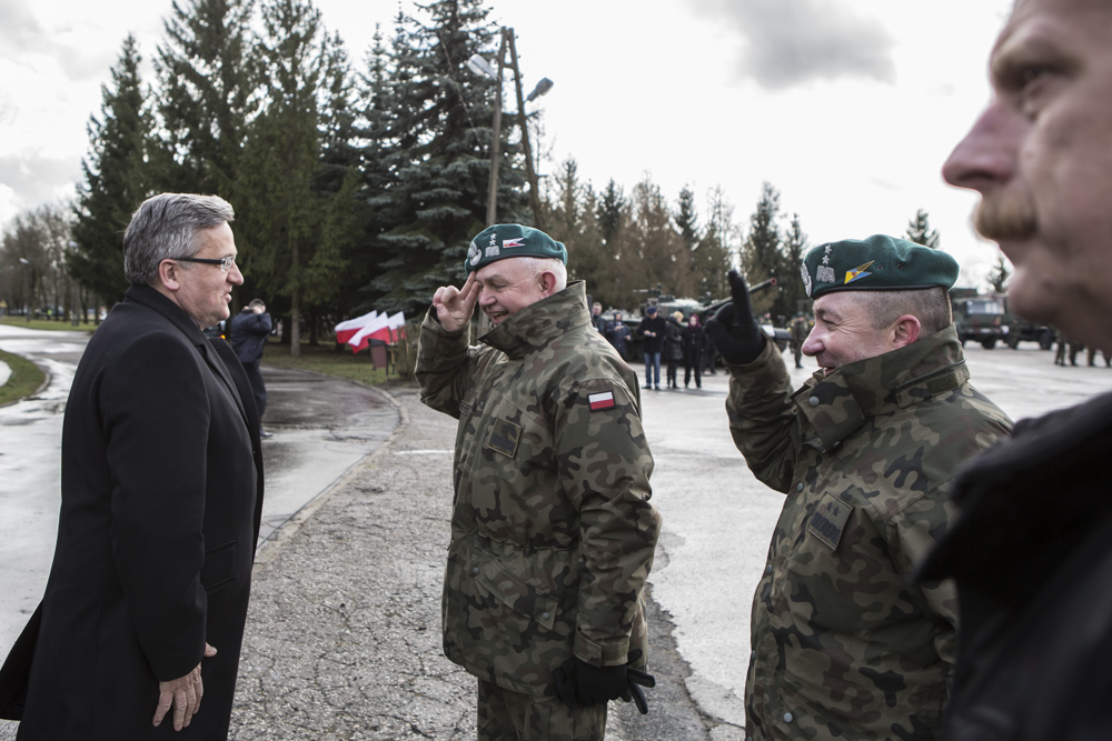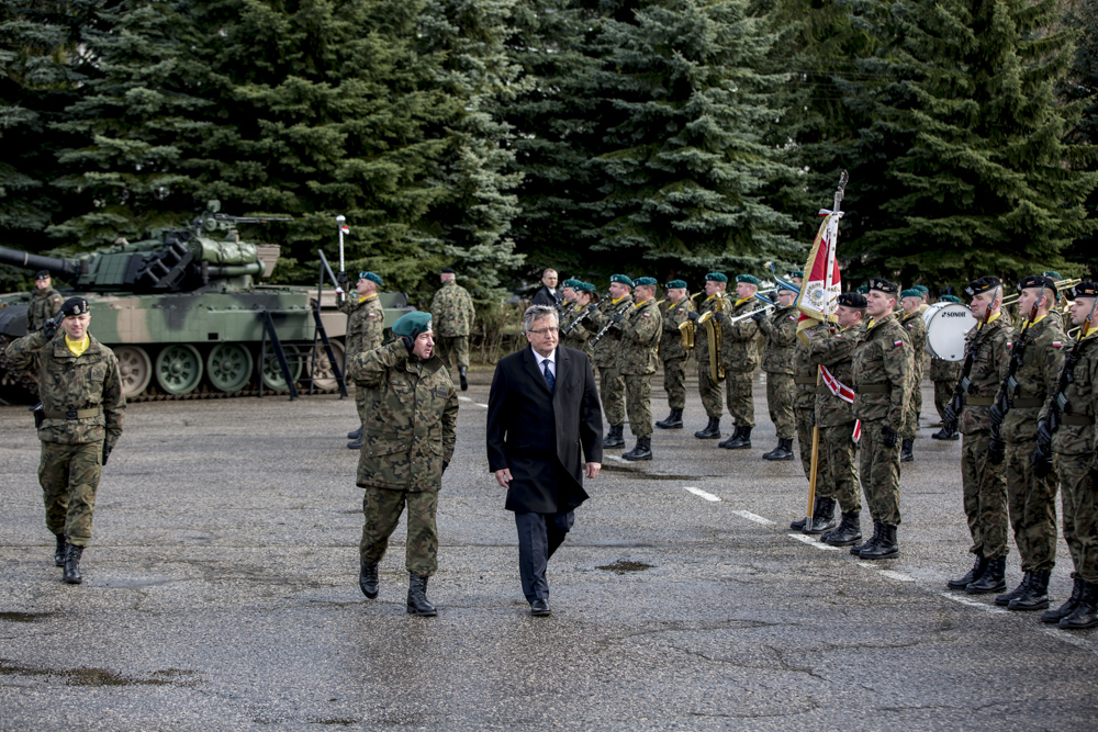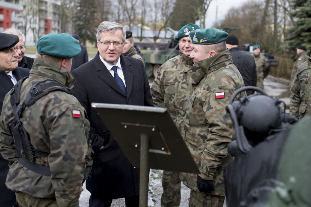 - Musimy zadbać o wzmocnienie ściany wschodniej w sensie zdolności obronnych - powiedział prezydent Bronisław Komorowski w środę w garnizonie w Siedlcach podczas wizyty w 16. Pomorskiej Dywizji Zmechanizowanej. Prezydent zaznaczył, że w dniu, w którym podpisał projekt ustawy zmieniającej i usprawniającej kierowanie państwem w warunkach kryzysu wojennego, chciał być w jednostce wojskowej na tzw. ścianie wschodniej, by zobaczyć - jak mówił - jak to funkcjonuje w tym realnym wymiarze sił zbrojnych. W czasie wizyty Prezydentowi towarzyszył szef BBN minister Stanisław Koziej.