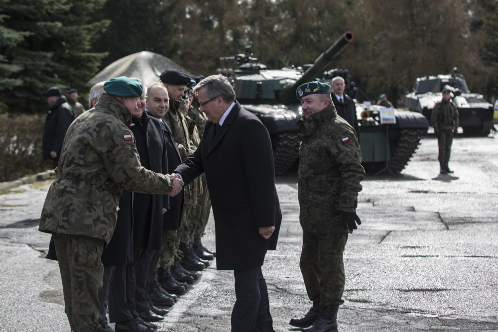 Garnizon w Siedlcach to jedno z miejsc stacjonowania 1 Warszawskiej Brygady Pancernej wchodzącej w skład 16. Pomorskiej Dywizji Zmechanizowanej. Prezydenta powitała kompania honorowa 1. Warszawskiej Brygady Pancernej i orkiestra wojskowa. Zaprezentowano także sprzęt wojskowy.