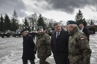 Bronisław Komorowski przypomniał, że na ubiegłorocznym szczycie NATO w Newport podjęte zostały decyzje, które wzmacniają całą flankę wschodnią Sojuszu, które dają o sobie znać również w postaci zwiększonej obecności jednostek wojskowych sił Sojuszu. - Ciągle dzieje się bardzo wiele w zakresie demonstrowania solidarności i obecności NATO na flance wschodniej - dodał.