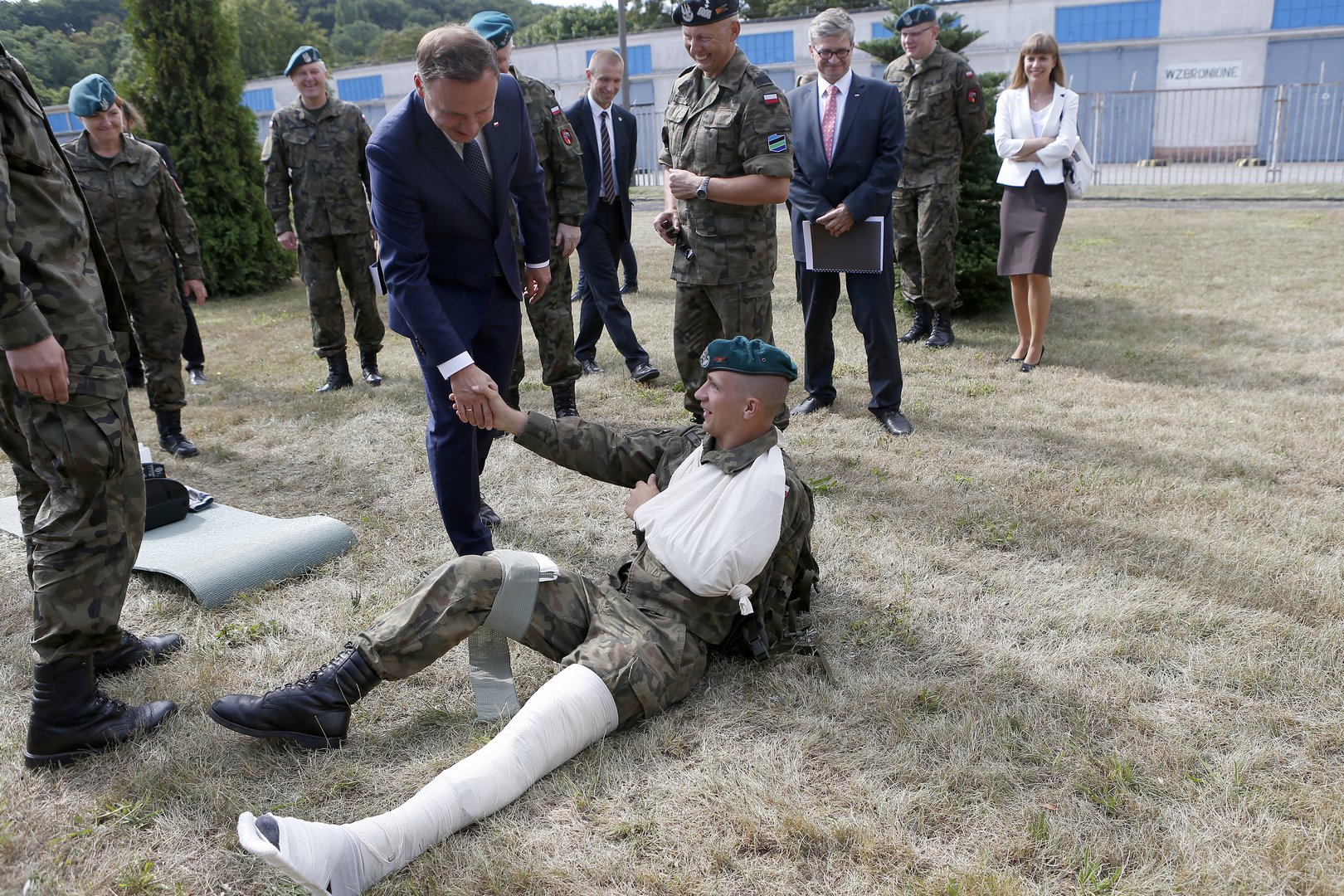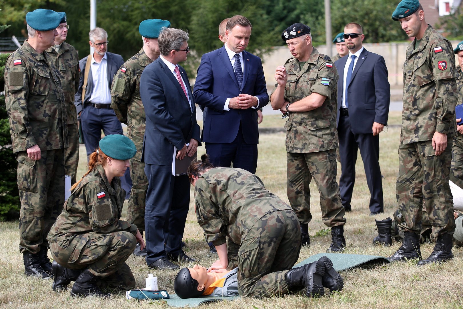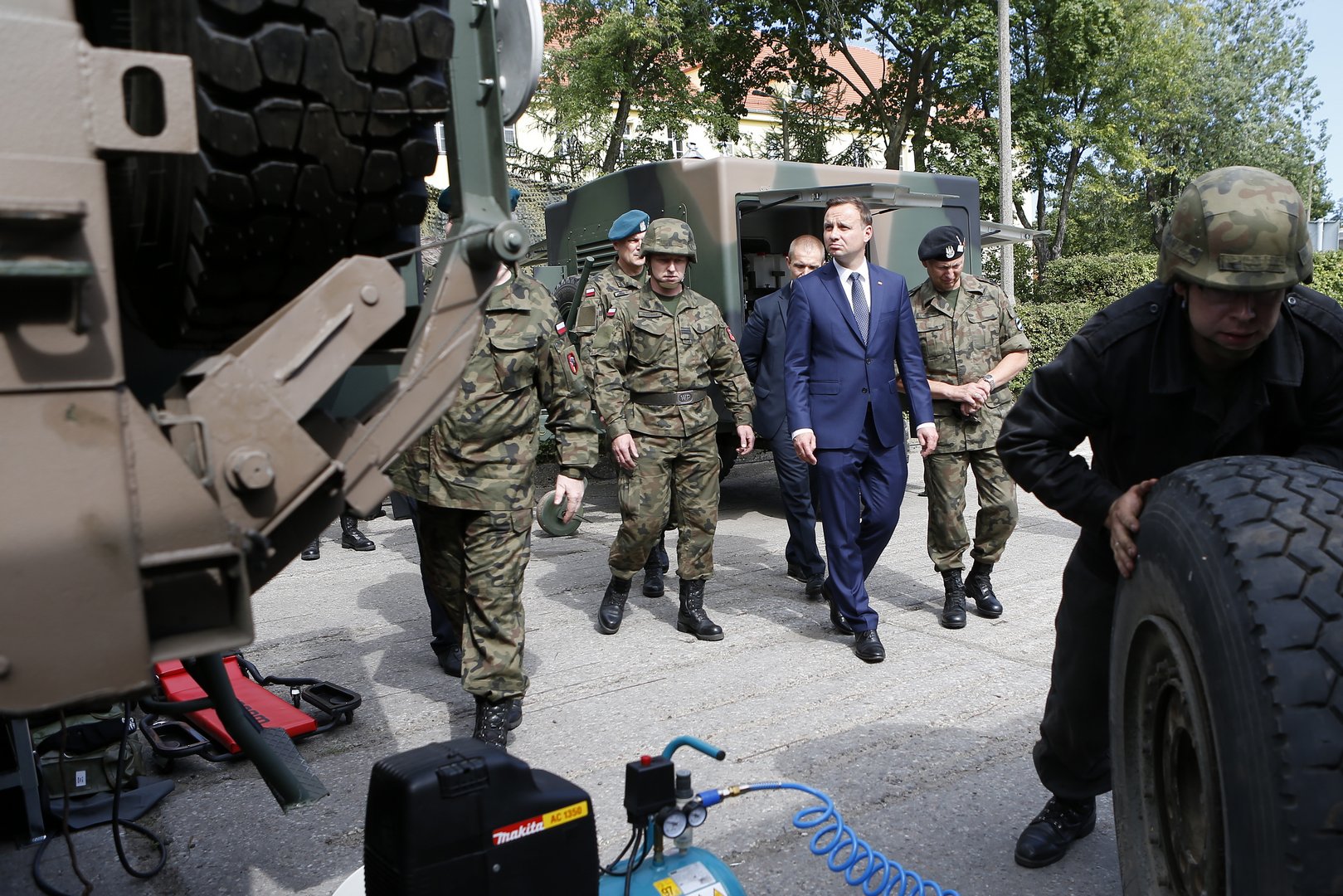W czwartek, 13 sierpnia br. Prezydent RP Andrzej Duda spotkał się z żołnierzami 5. pułku inżynieryjnego, jednej z najważniejszych jednostek inżynieryjnych Wojsk Lądowych. Na miejscu Prezydenta powitał dowódca generalny Rodzajów Sił Zbrojnych gen. broni Mirosław Różański, który towarzyszył mu także podczas zapoznawania się z zadaniami jednostki i obserwacji szkolenia żołnierzy.