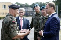 Po wizycie, Prezydent, wraz z szefem BBN ministrem Pawłem Solochem oraz ministrem Krzysztofem Szczerskim, udali się do siedziby Dowództwa Wielonarodowego Korpusu Północ-Wschód na uroczystość przekazania dowodzenia Korpusem.