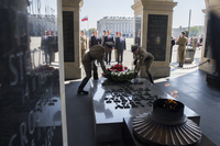 Następnie prezydent złożył wieniec na płycie Grobu Nieznanego Żołnierza na pl. Piłsudskiego, a potem przed drugim z warszawskich pomników marszałka – tym ustawionym przy placu jego imienia, u wylotu ul. Tokarzewskiego-Karaszewicza.