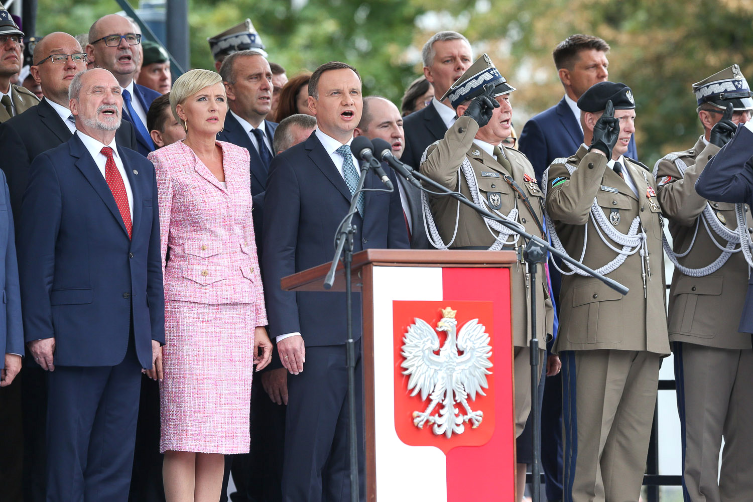 Wcześniej prezydent przypomniał, że tradycję defilady w Święto Wojska Polskiego przywrócił b. prezydent Lech Kaczyński. Podkreślił przy tym, że służy ona "nie tylko pokazaniu tego, jak wygląda dzisiaj nasz potencjał militarny, ale służy przede wszystkim budowaniu wspólnoty pomiędzy żołnierzami służącymi Polsce, żołnierzami państw z nami sojuszniczych, a nami, czyli polskim społeczeństwem". - Jesteśmy tutaj razem. Jeszcze raz serdecznie dziękuję i składam żołnierzom i ich rodzinom najserdeczniejsze życzenia - dodał Prezydent Duda.