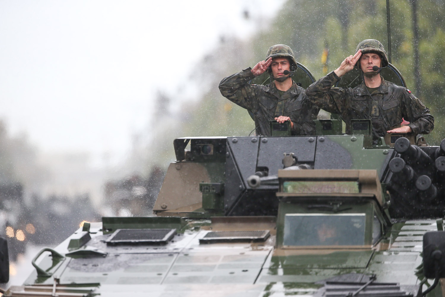 Po przemówieniu prezydenta rozpoczęła się defilada, w której wzięło udział blisko 1,5 tys. żołnierzy, ponad 150 pojazdów wojskowych, ponad 50 samolotów i śmigłowców.