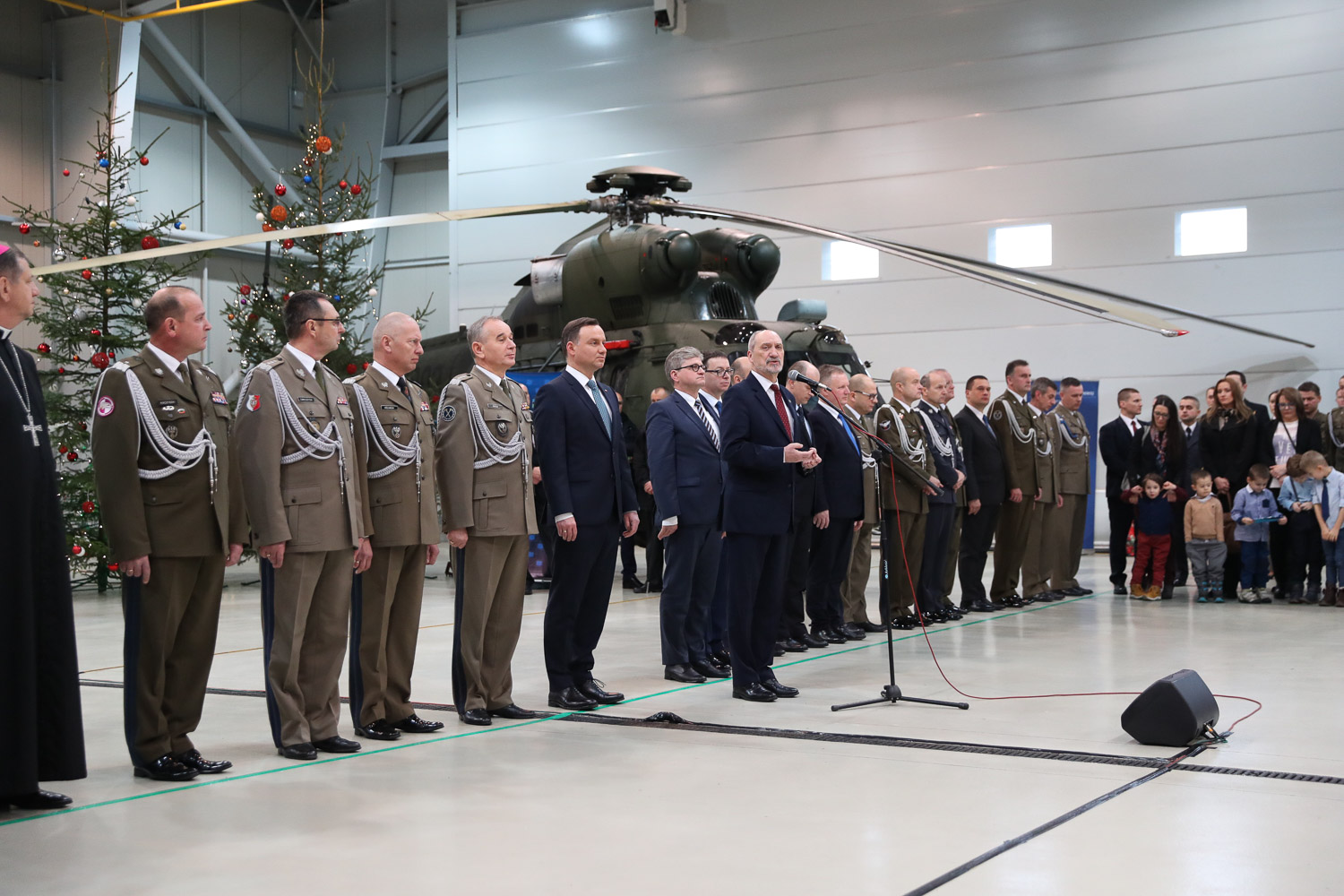 Prezydent podziękował też rodzinom i bliskim żołnierzy. - Dziękuję za tę obecność, bo to ta obecność tworzy prawdziwą atmosferę świąt Bożego Narodzenia i prawdziwą atmosferę wigilijną - zaznaczył. - Proszę o przekazanie tego podziękowania od prezydenta Rzeczypospolitej, nie tylko podziękowania, ale też olbrzymich wyrazów szacunku dla najbliższych, dla rodzin tych, którzy służą Rzeczypospolitej - mówił.