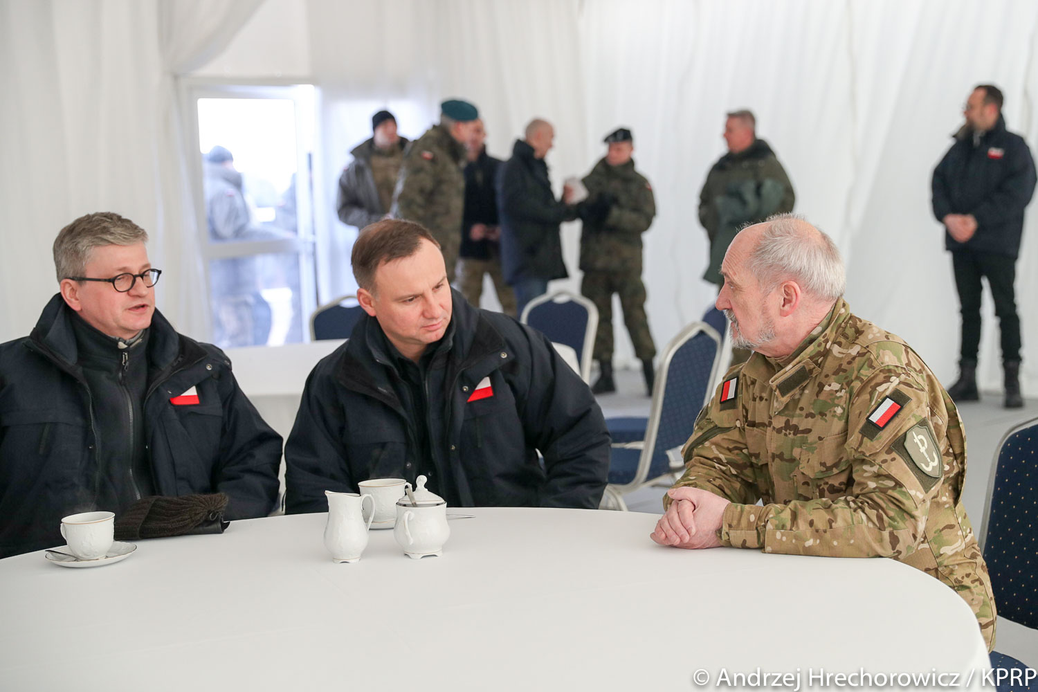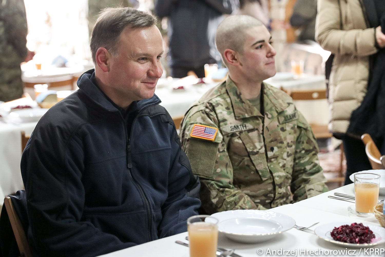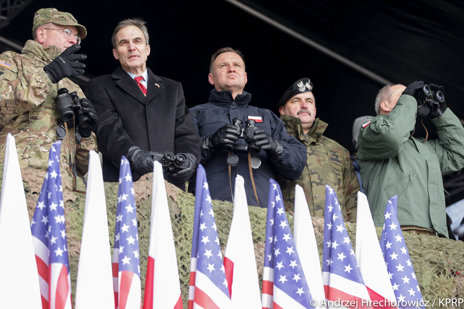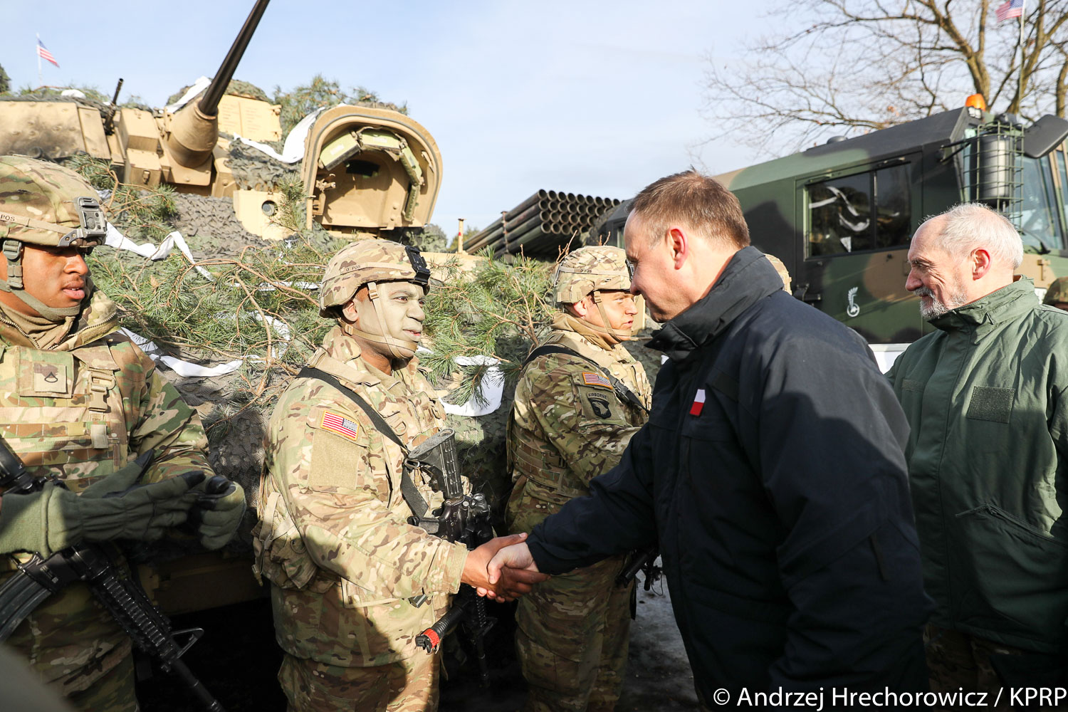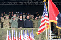 W uroczystości uczestniczyli też minister obrony Antoni Macierewicz, ambasador Stanów Zjednoczonych Paul Jones, zastępca dowódcy wojsk USA w Europie gen. broni Timothy Ray i dowódca wojsk lądowych USA w Europie gen. broni Ben Hodges. Prezydentowi towarzyszył szef Biura Bezpieczeństwa Narodowego minister Paweł Soloch.