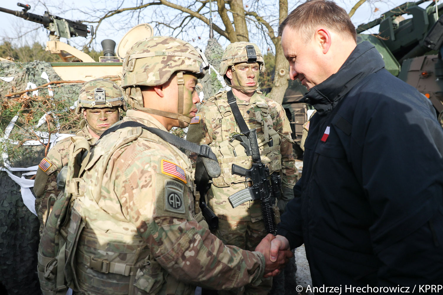 - Witamy naszych amerykańskich sojuszników, wierząc w to, że ta chwila jest dziejowa dlatego, że następuje zmiana paradygmatów w naszej części Europy i w naszej części Europy i świata - powiedział prezydent. Podkreślił, że zmiany można obserwować nie tylko w sojuszniczych dokumentach i decyzjach, podjętych np. na warszawskim szczycie NATO, ale "fizycznie sojusz północnoatlantycki, armia Stanów Zjednoczonych jest obecna w Polsce".