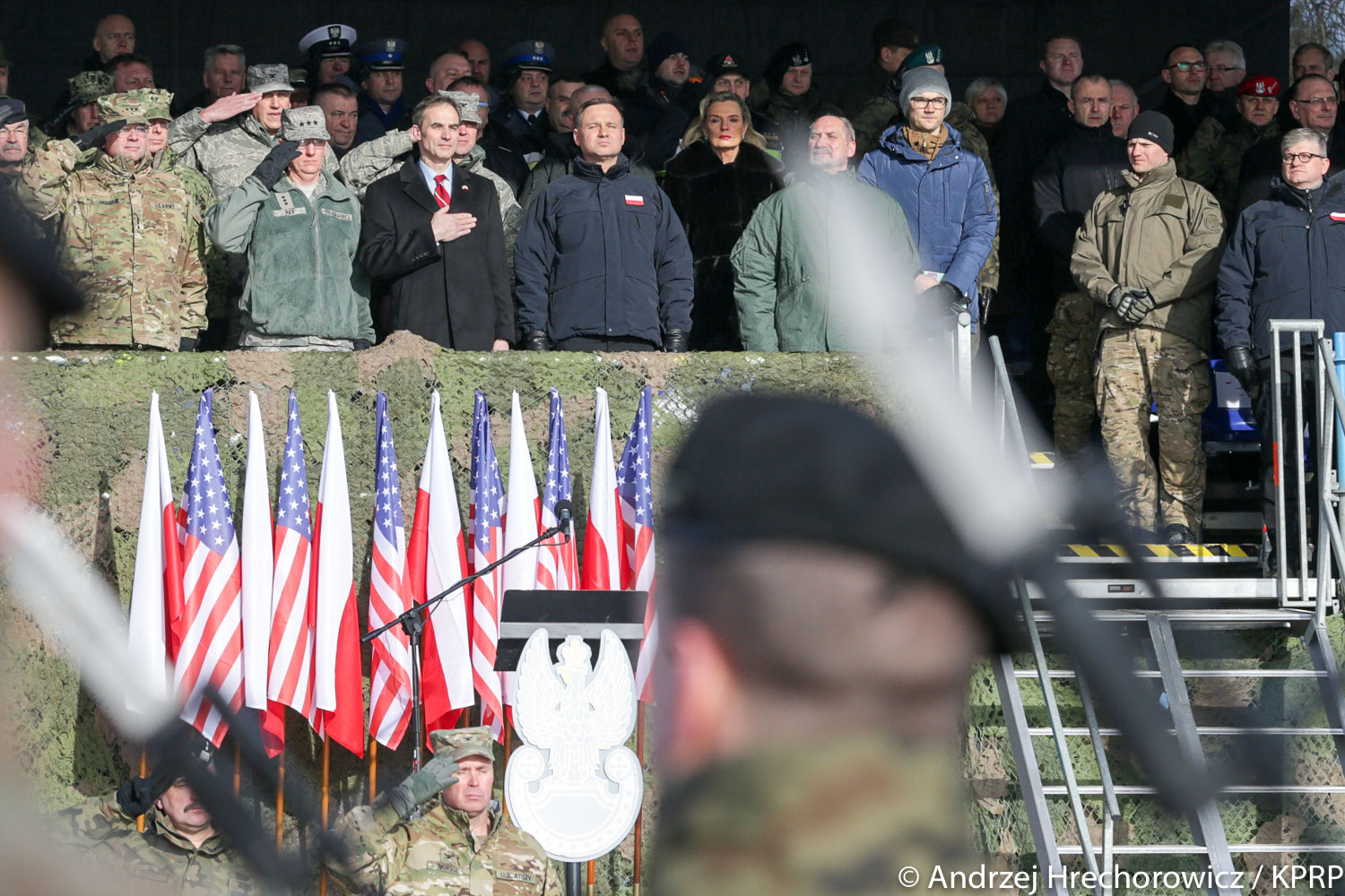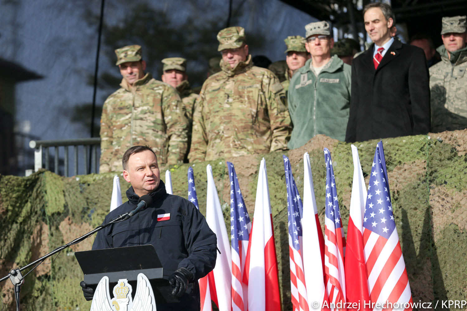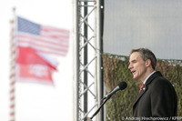 - To bardzo ważny dzień. Przybyłem tutaj do Żagania z radością po to, aby powitać naszych gości i sojuszników, dowódców i żołnierzy armii Stanów Zjednoczonych - powiedział prezydent. Dodał, że ogromnie się cieszy, "możemy być tutaj w tej chwili, która (...) jest chwilą dziejową".