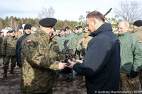 Prezydent przyjechał do Żagania obejrzeć początek szkolenia żołnierzy polskich razem z amerykańskimi, którzy w styczniu przyjechali do Polski w ramach wzmacniania wschodniej flanki NATO.