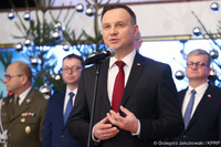 - Chciałem wam podziękować za cały ten rok oddanej służby ojczyźnie. Chciałem podziękować z całego serca waszym bliskim za poświęcenie - mówił Andrzej Duda. Zaznaczył, że życzenia kieruje do wszystkich żołnierzy oraz pracowników cywilnych wojska – tych w kraju i tych, którzy "w ramach ośmiu polskich kontyngentów wojskowych służą poza granicami".