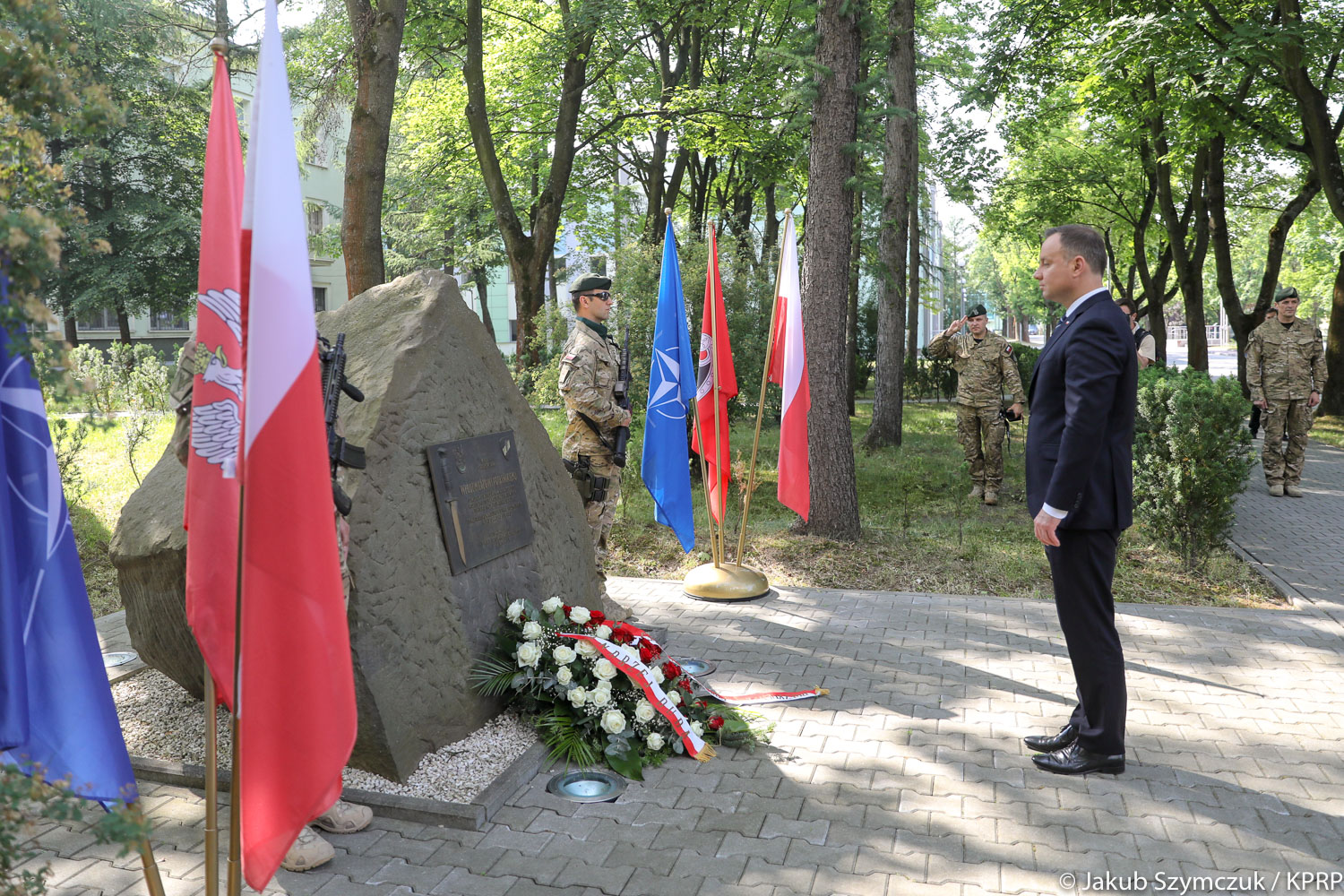 Wizytę w Dowództwie Komponentu Wojsk Specjalnych Prezydent rozpoczął od złożenia kwiatów przed obeliskami poświęconymi śp. gen. A.E. Fieldorfowi „Nilowi” i śp. gen. broni Włodzimierzowi Potasińskiemu.