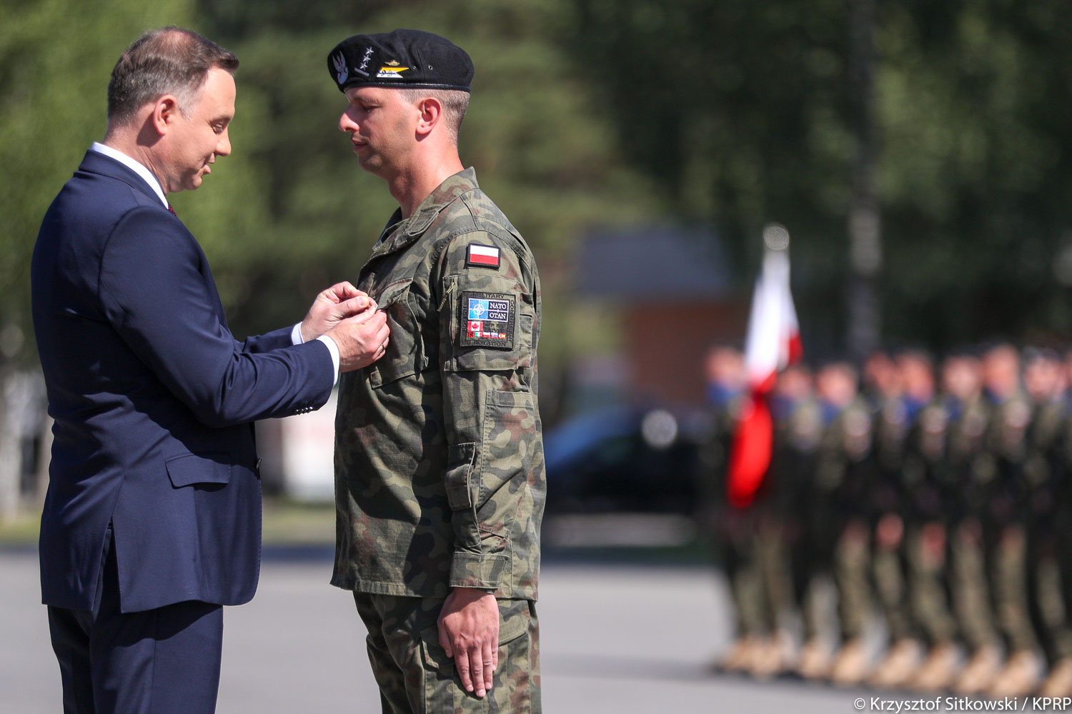 Prezydent RP wręczył odznaczenia żołnierzom Polskiego Kontyngentu Wojskowego oraz ryngrafy dowódcom pododdziałów wchodzących w skład Grupy Bojowej Wzmocnionej Wysuniętej Obecności NATO.
