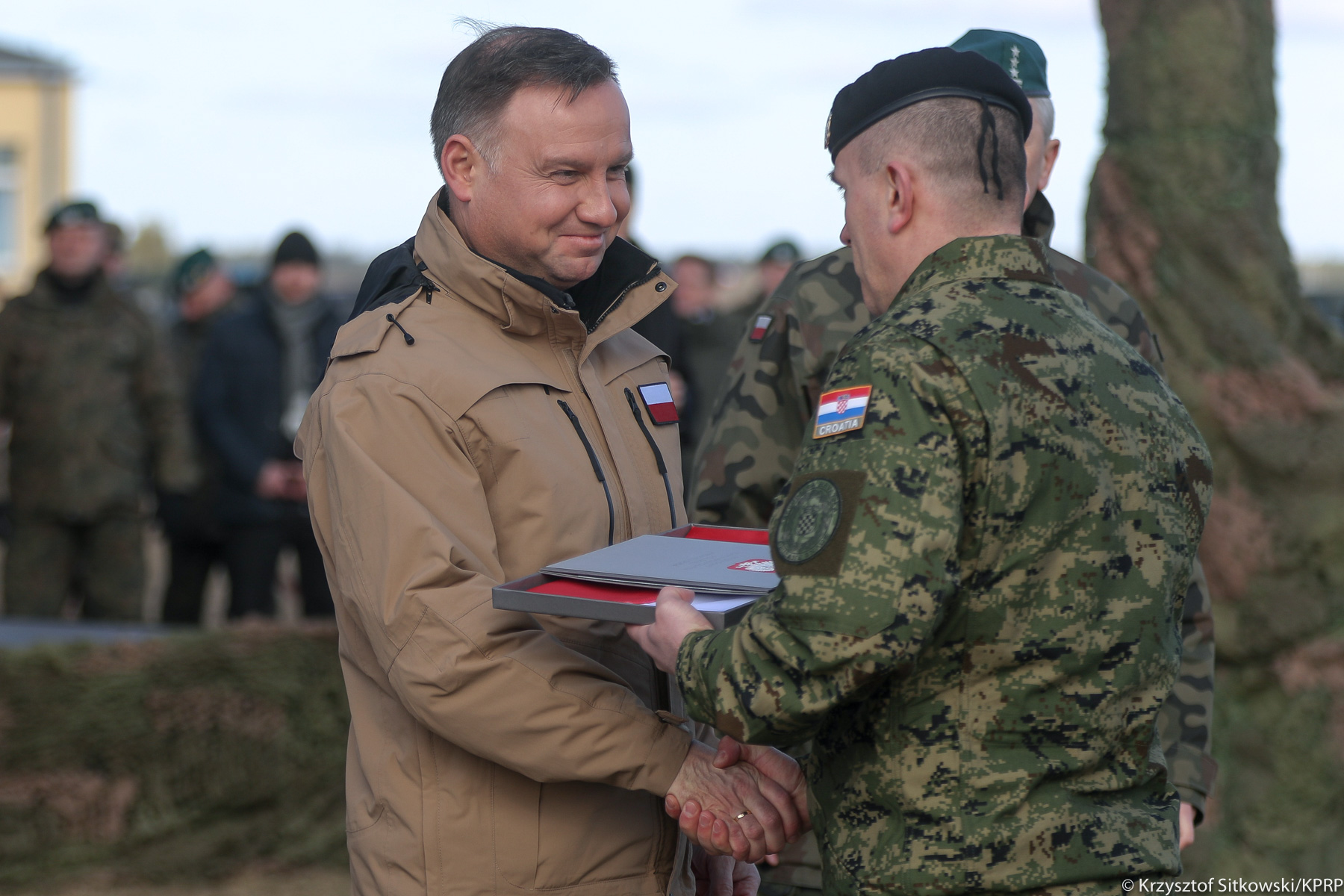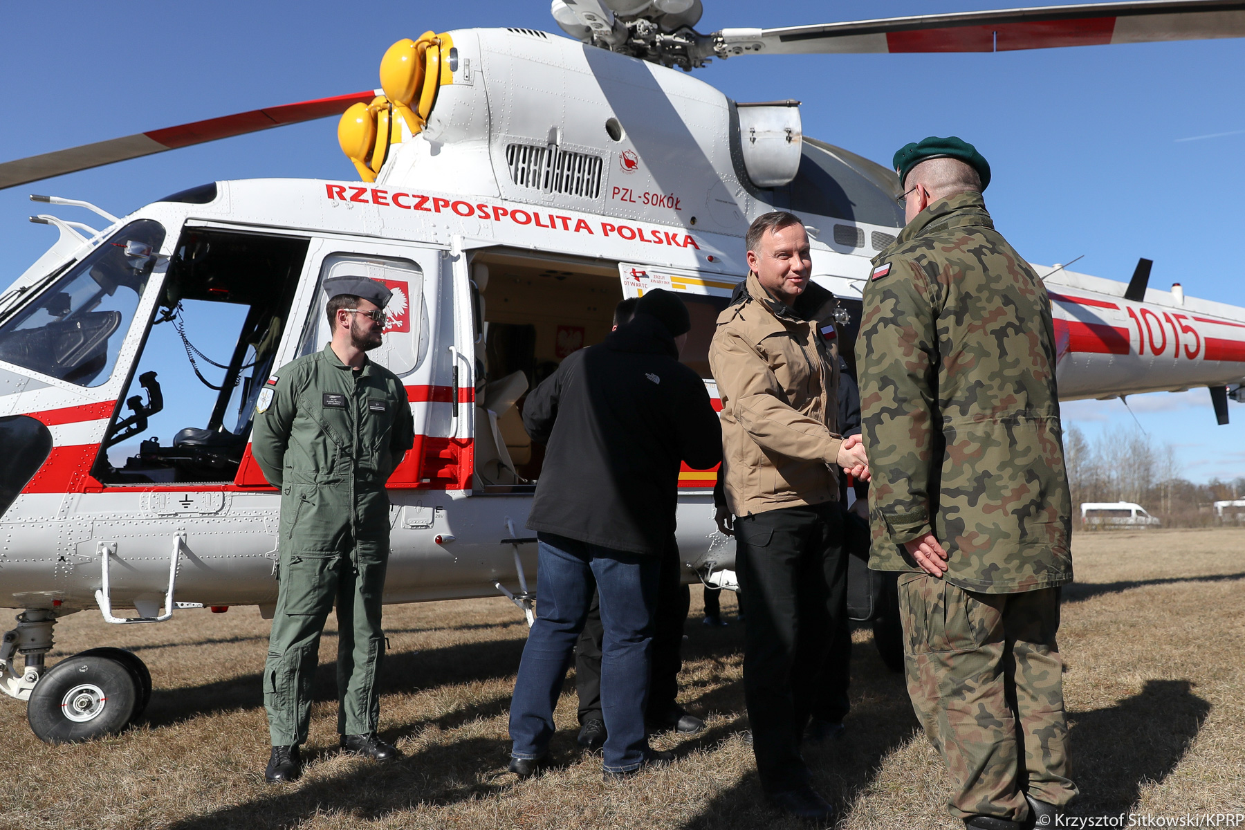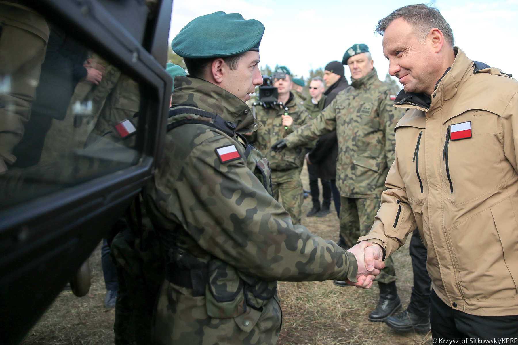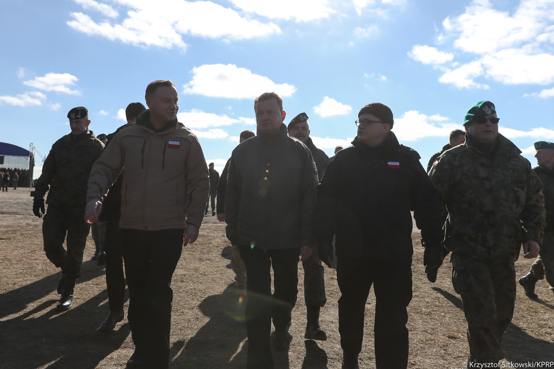 Prezydentowi towarzyszyli Minister Obrony Narodowej Mariusz Błaszczak i Szef BBN minister Paweł Soloch oraz minister Błażej Spychalski.