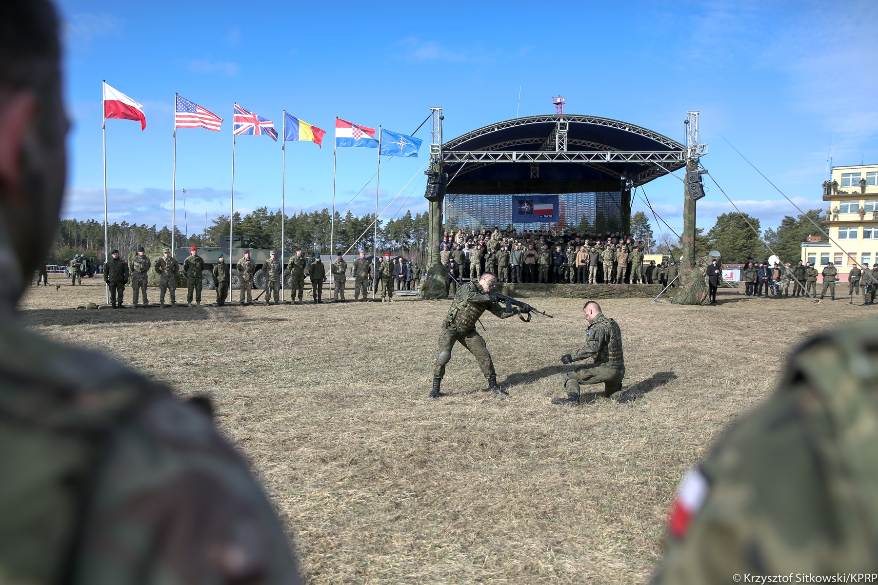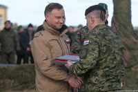 Prezydent Andrzej Duda obserwował w środę na poligonie w Orzyszu pokaz dynamiczny przygotowany przez żołnierzy 15. Giżyckiej Brygady Zmechanizowanej oraz żołnierzy z USA, Wielkiej Brytanii, Rumunii i Chorwacji tworzących Wielonarodową Batalionową Grupę Bojową NATO, w ramach wzmocnionej wysuniętej obecności NATO na wschodniej flance.