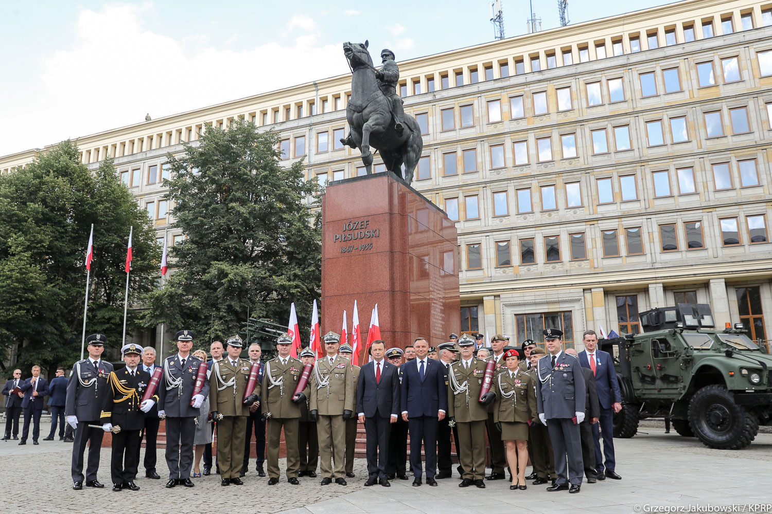 Prezydent RP Andrzej Duda wręczył nominacje generalskie i admiralską oraz odznaczenia państwowe z okazji Święta Wojska Polskiego zasłużonym dla Sił Zbrojnych Rzeczypospolitej Polskiej oraz w związku z obchodami 100. rocznicy wybuchu I Powstania Śląskiego.