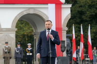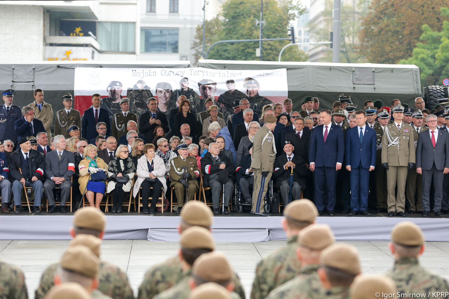Na pl. Piłsudskiego w Warszawie Prezydent Andrzej Duda wziął udział w święcie Wojsk Obrony Terytorialnej. Trzem brygadom WOT wręczył sztandary.