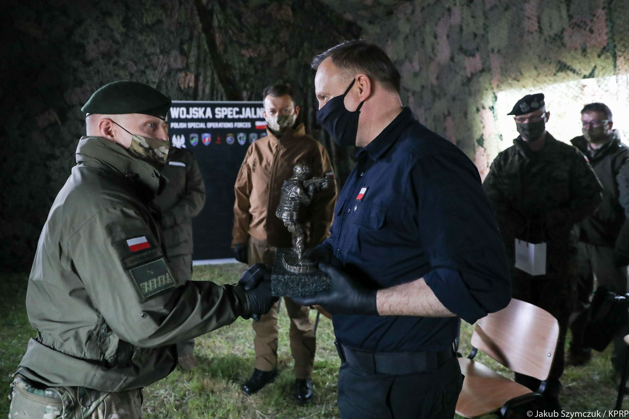 Prezydent gratulował z okazji Święta Wojsk Specjalnych żołnierzom Jednostki Wojskowej AGAT, a także pozostałych jednostek specjalnych, które – jak mówił – liczą łącznie ponad 3 tys. żołnierzy. Dziękował wszystkim za dotychczasową służbę i prosił, aby wyrazy szacunku i podziękowania przekazali też swoim najbliższym, oczekującym na ich powroty ze służby w kraju i z zagranicy.