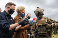 „Chciałbym, żebyście mieli państwo w swoim dostępie to, co najlepsze, żebyście nie tylko służyli bezpiecznie, ale też byli dumni, kiedy spotykacie się ze swoimi kolegami z innych krajów, że takim właśnie sprzętem – absolutną światową awangardą i absolutną światową nowoczesnością – na co dzień się posługujecie” - zadeklarował prezydent, wspominając też o potrzebie satysfakcji ze służby.