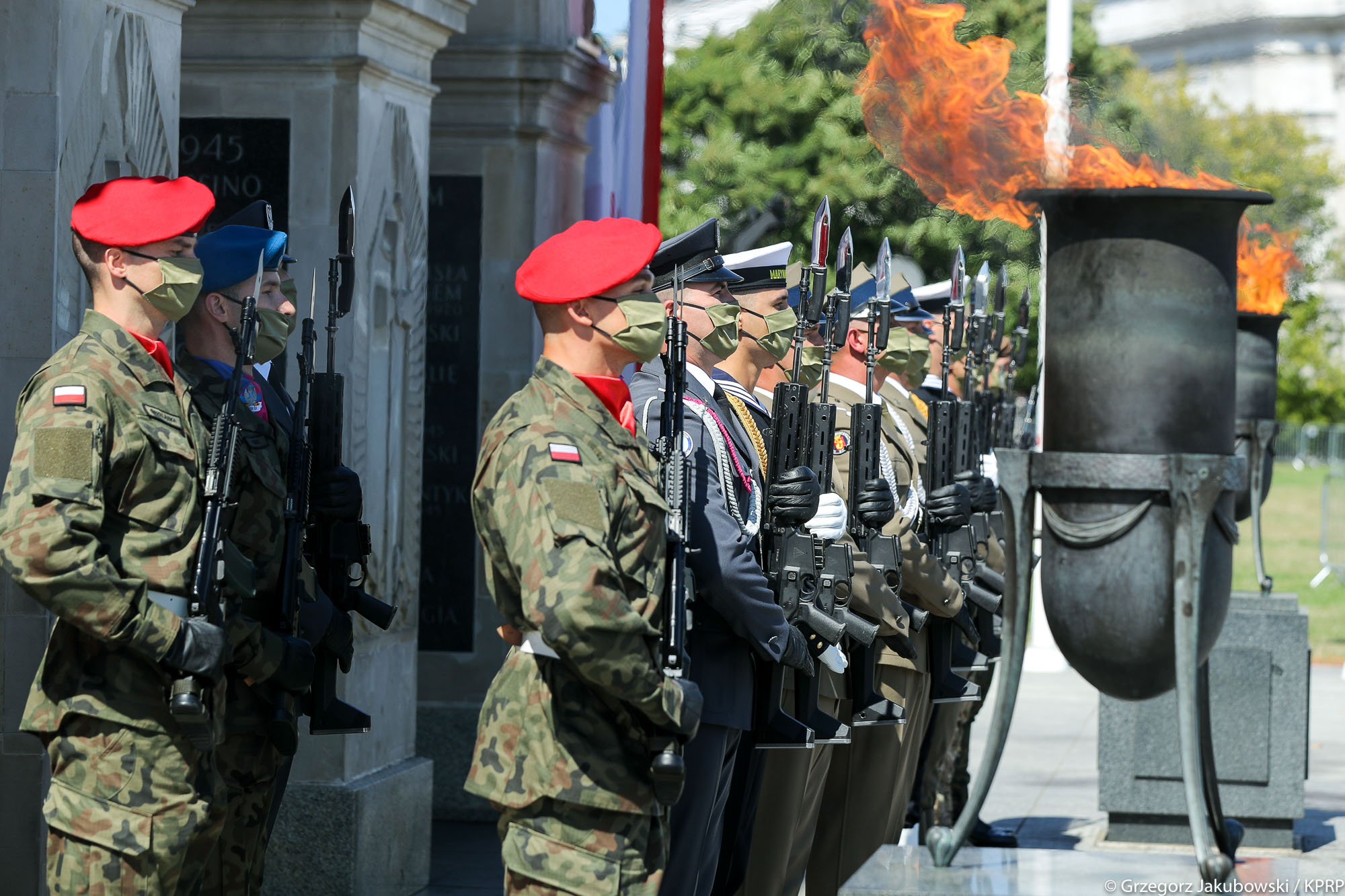 Przed grobem Nieznanego Żołnierza w Warszawie odbyła się uroczysta odprawa wart – główna uroczystość przypadającego dziś Święta Wojska Polskiego w 100. rocznicę Bitwy Warszawskiej.