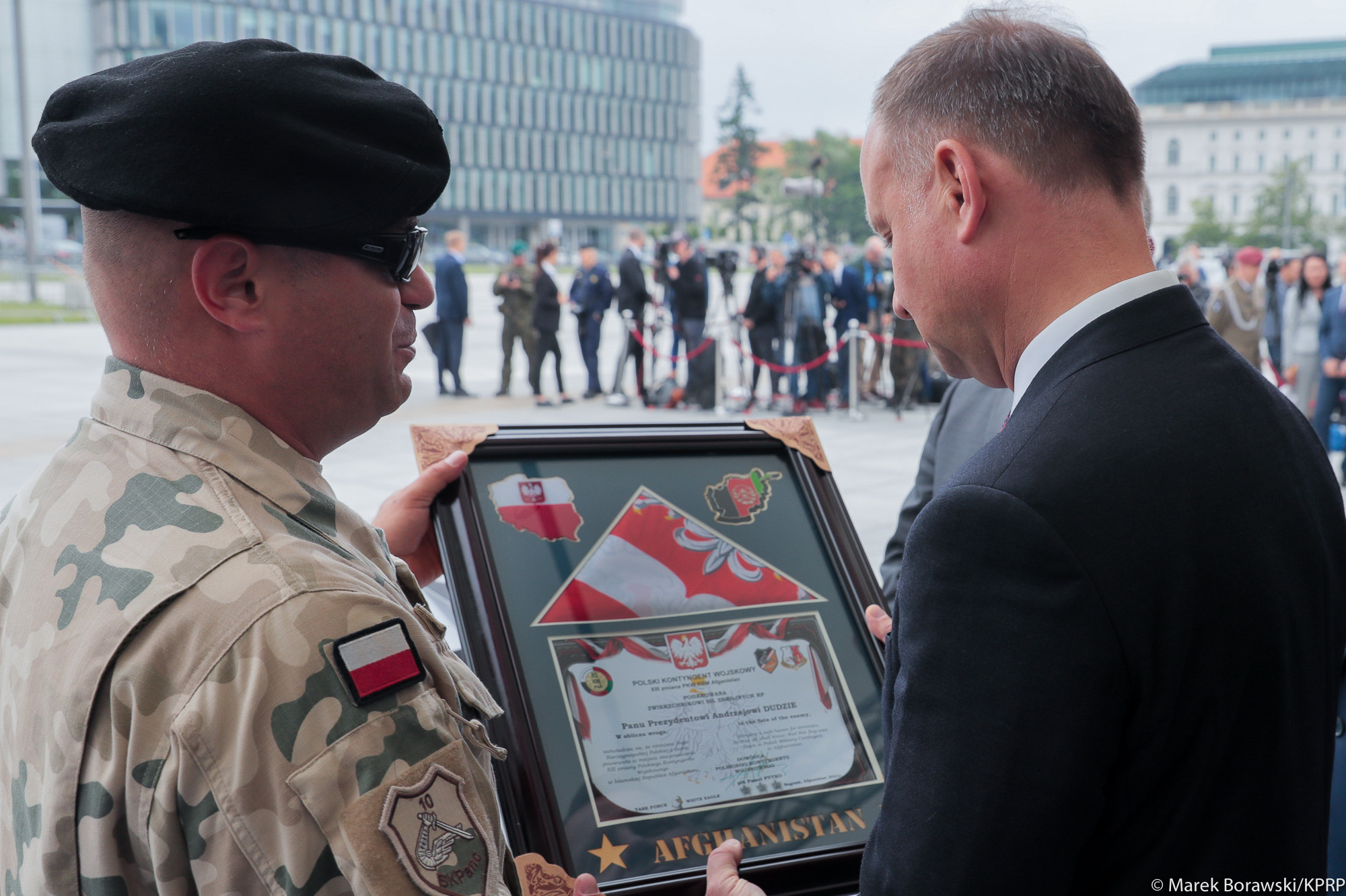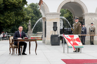 Podczas uroczystości Prezydent RP otrzymał z rąk dowódcy XIII Zmiany PKW Afganistan ostatnią flagę państwową z godłem, która towarzyszyła żołnierzom podczas misji.