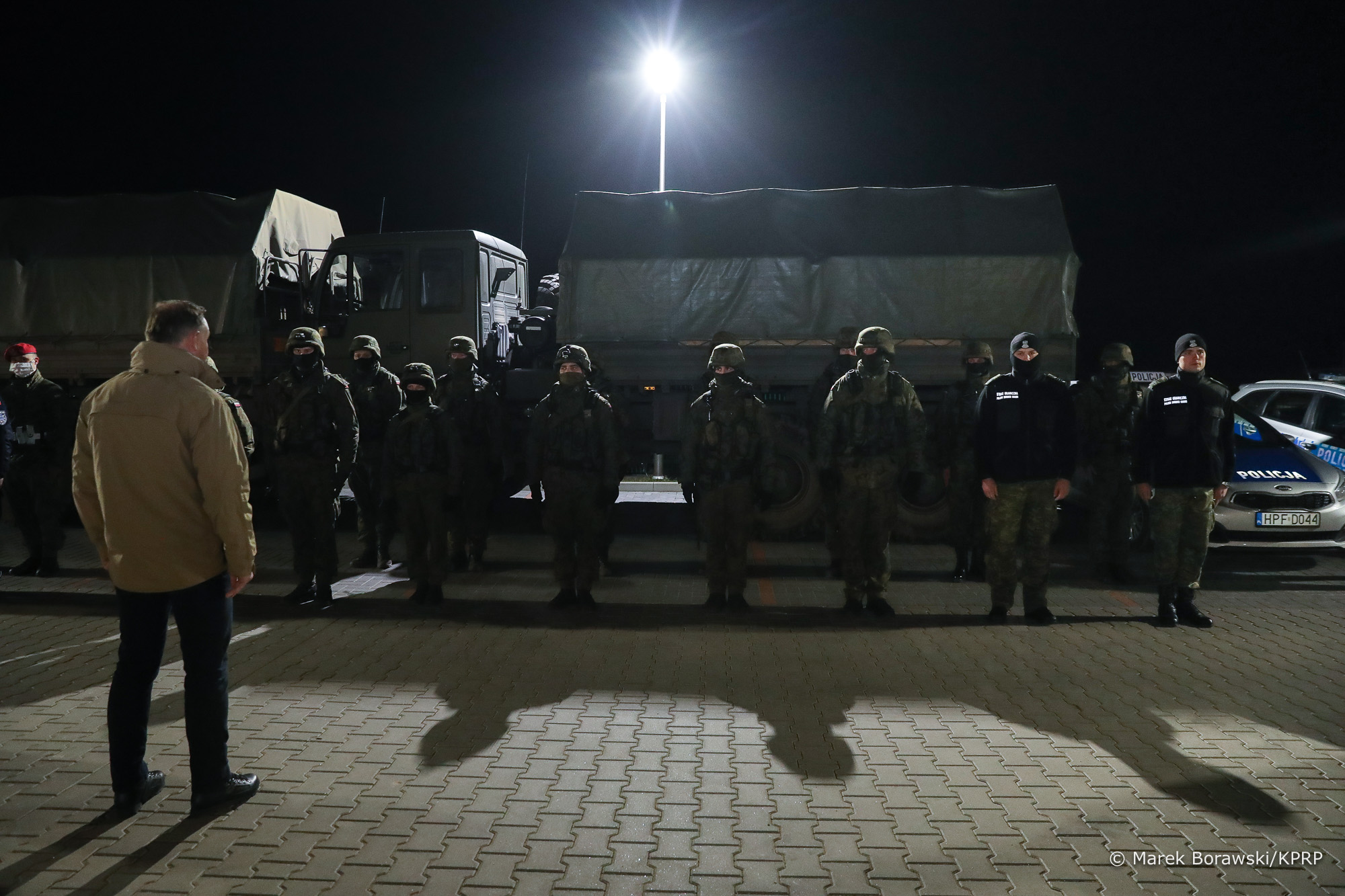 Wziął udział w odprawie z funkcjonariuszami i żołnierzami udającymi się na nocne patrole wzdłuż granicy, życząc im bezpiecznej służby.