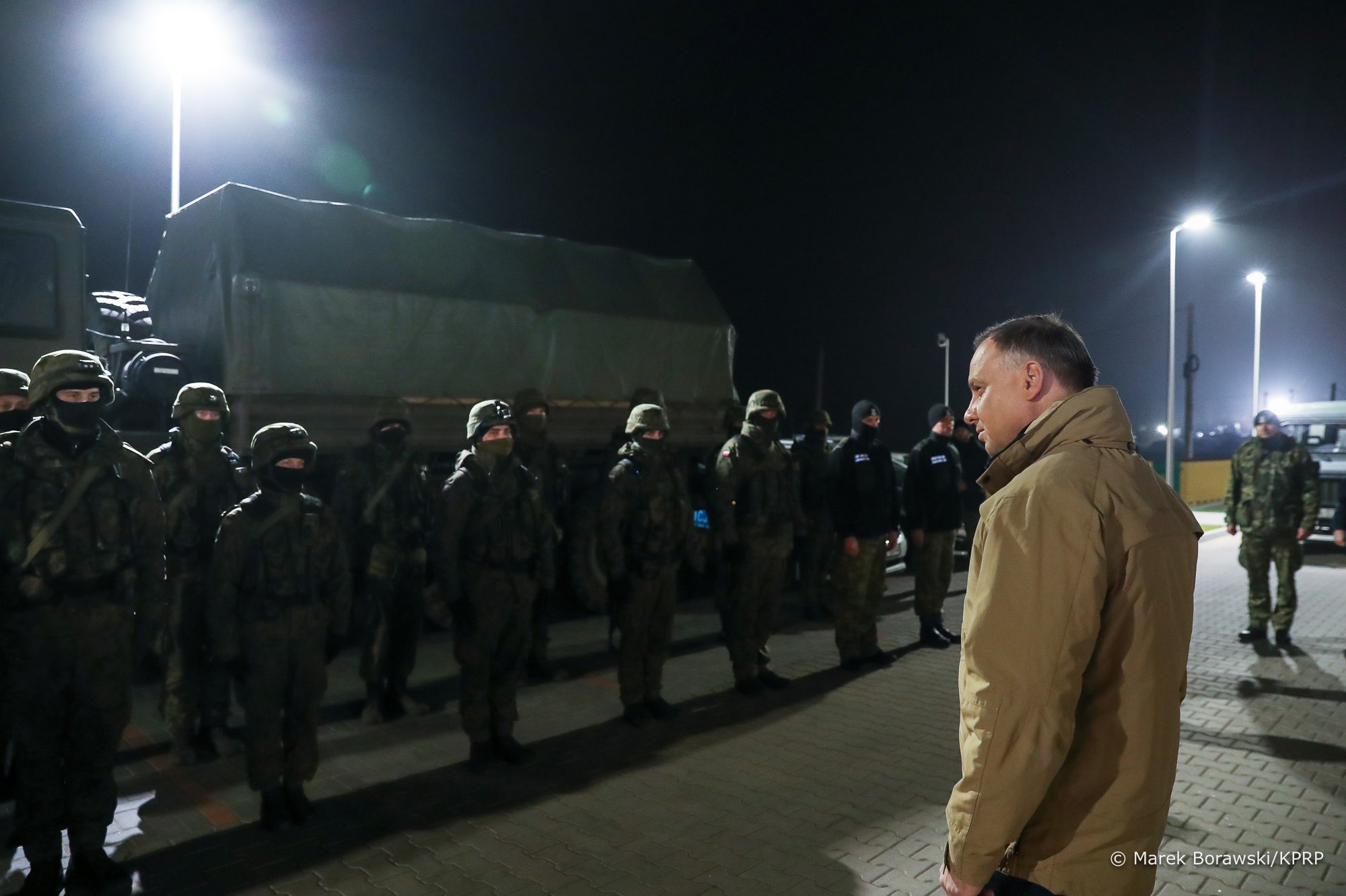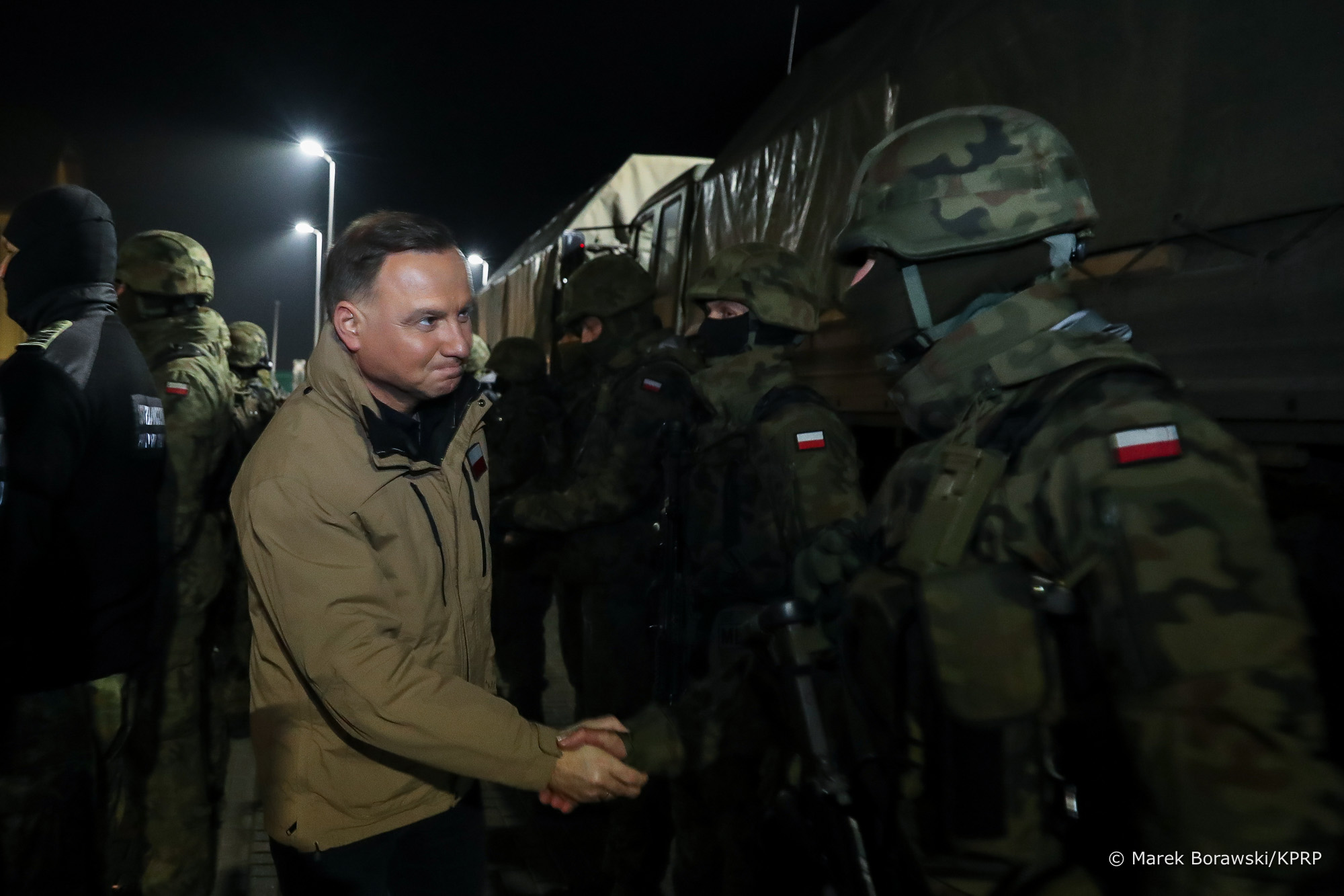 Prezydent spotkał się z funkcjonariuszami i żołnierzami chroniącymi granicę z Białorusią