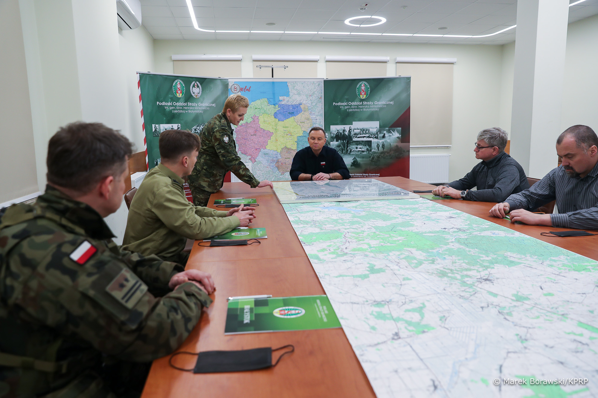 Prezydent Andrzej Duda spotkał się z funkcjonariuszami Straży Granicznej, Policji oraz żołnierzami chroniącymi granicę z Białorusią.