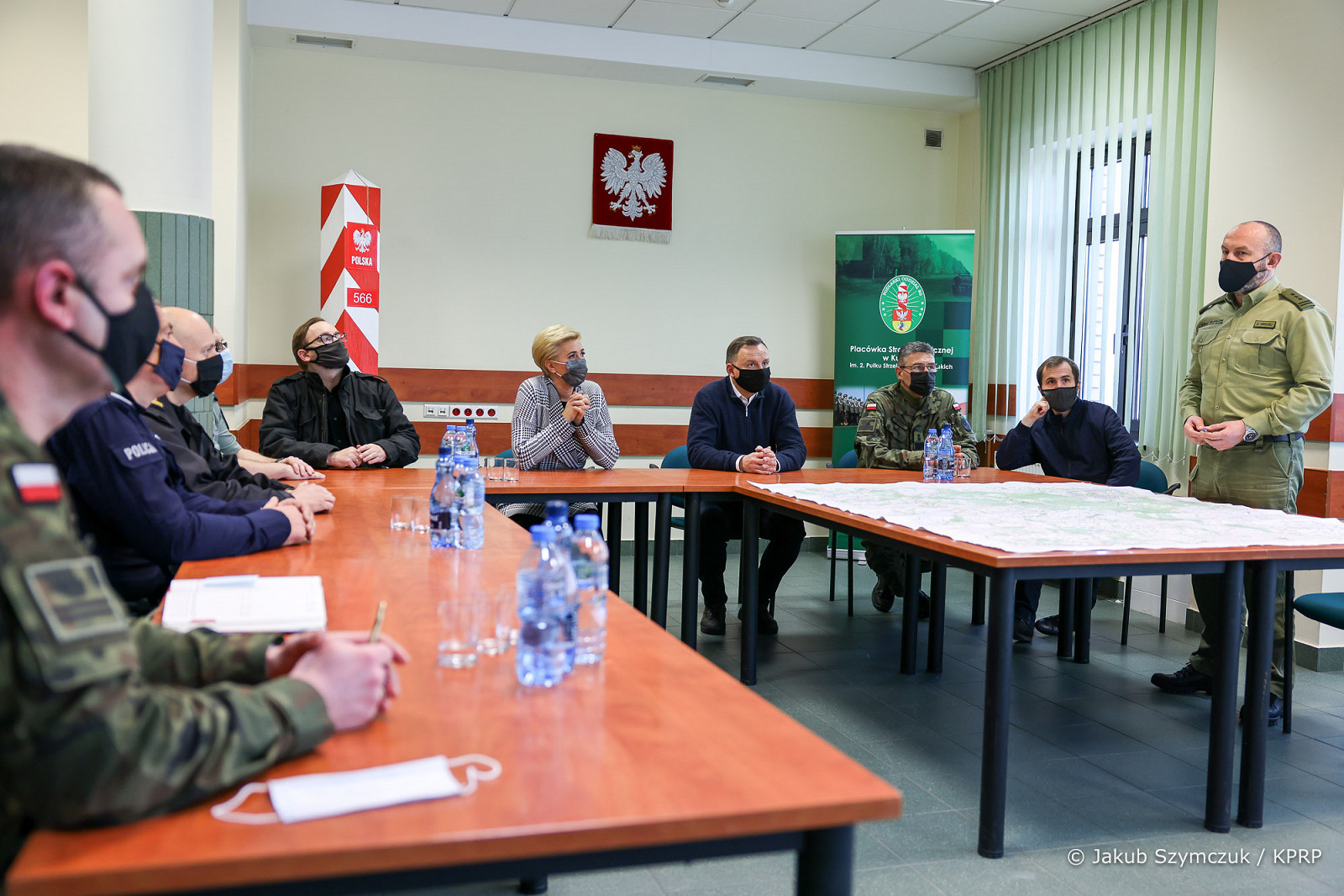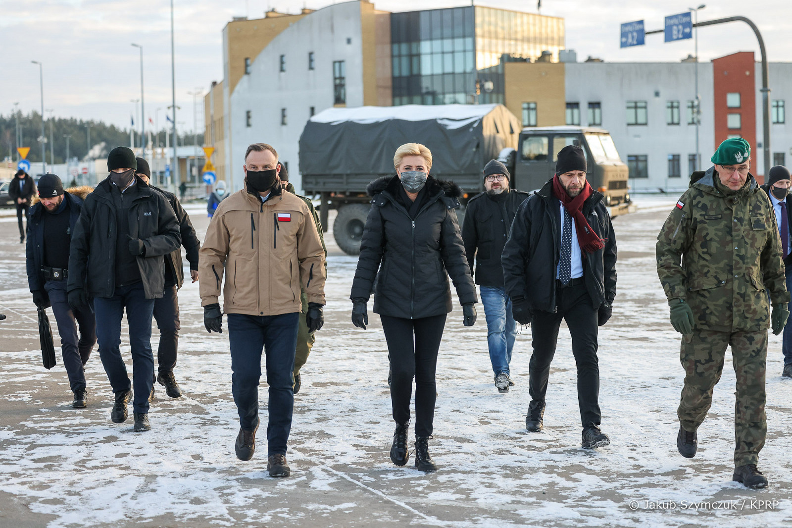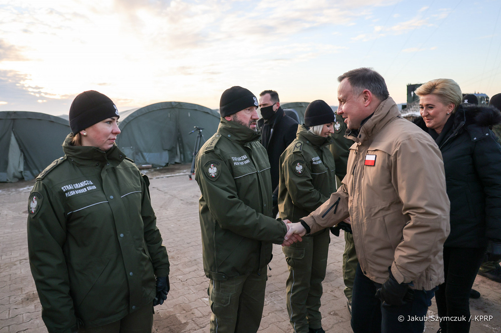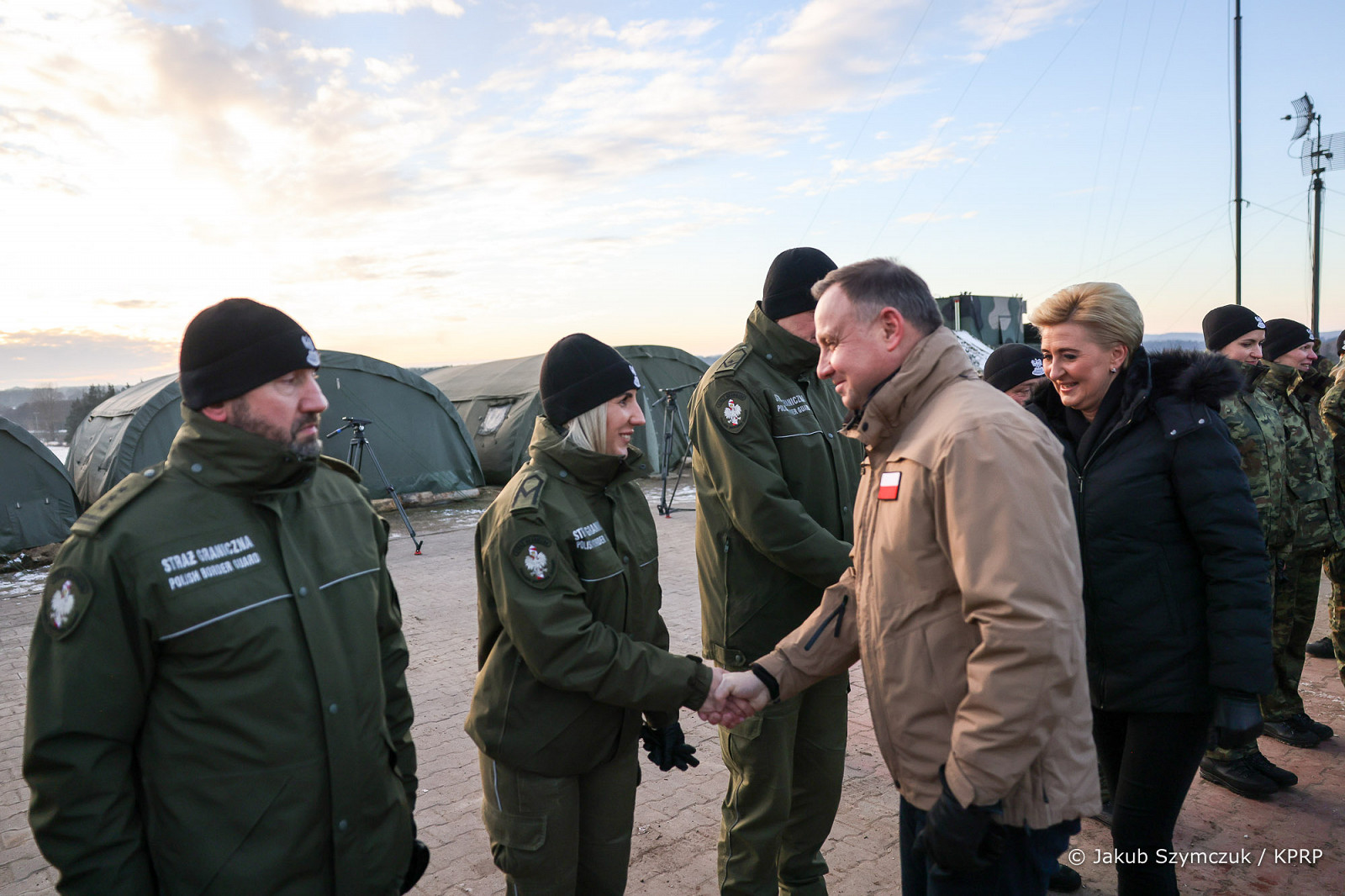 Prezydent Andrzej Duda wraz z Małżonką spotkali się w Kuźnicy z funkcjonariuszami Straży Granicznej, Policji, Straży Pożarnej, żołnierzami Wojska Polskiego oraz obecnymi na miejscu żołnierzami wojsk sojuszniczych.