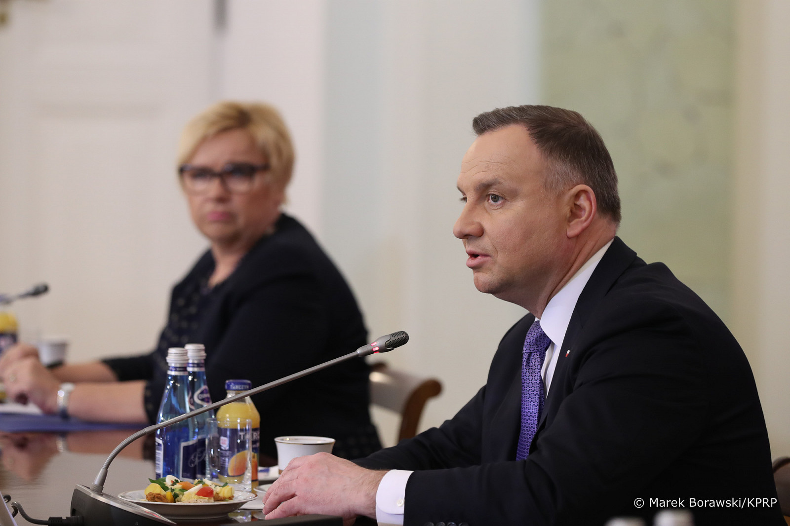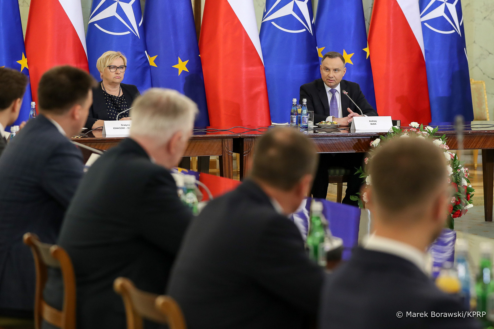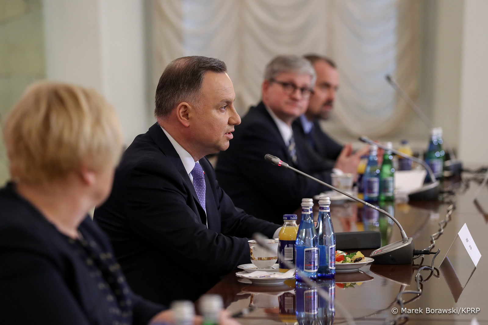 – Dziękuję za stawiennictwo. Warto, żebyśmy podzielili się informacjami, żeby była pełna świadomość, jak w danym momencie wygląda obraz sytuacji, obraz sceny politycznej, nie tylko tej naszej, wewnątrzkrajowej, ale także tej międzynarodowej – mówił Prezydent RP, otwierając posiedzenie.