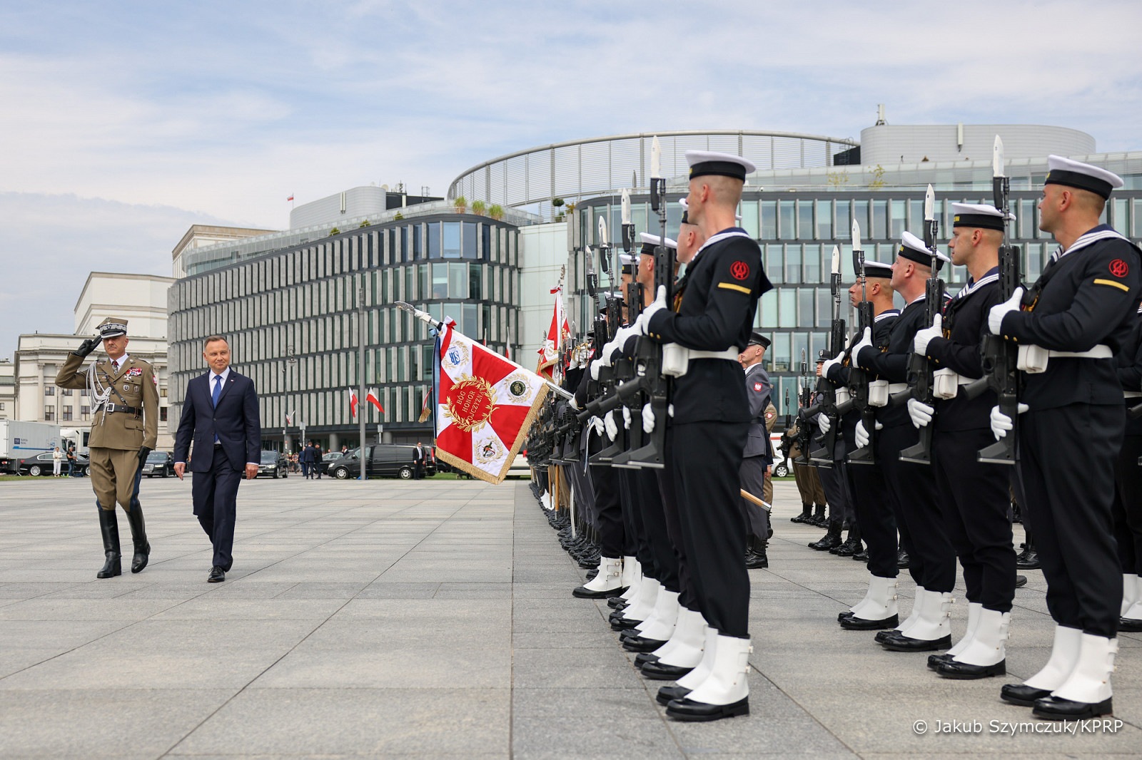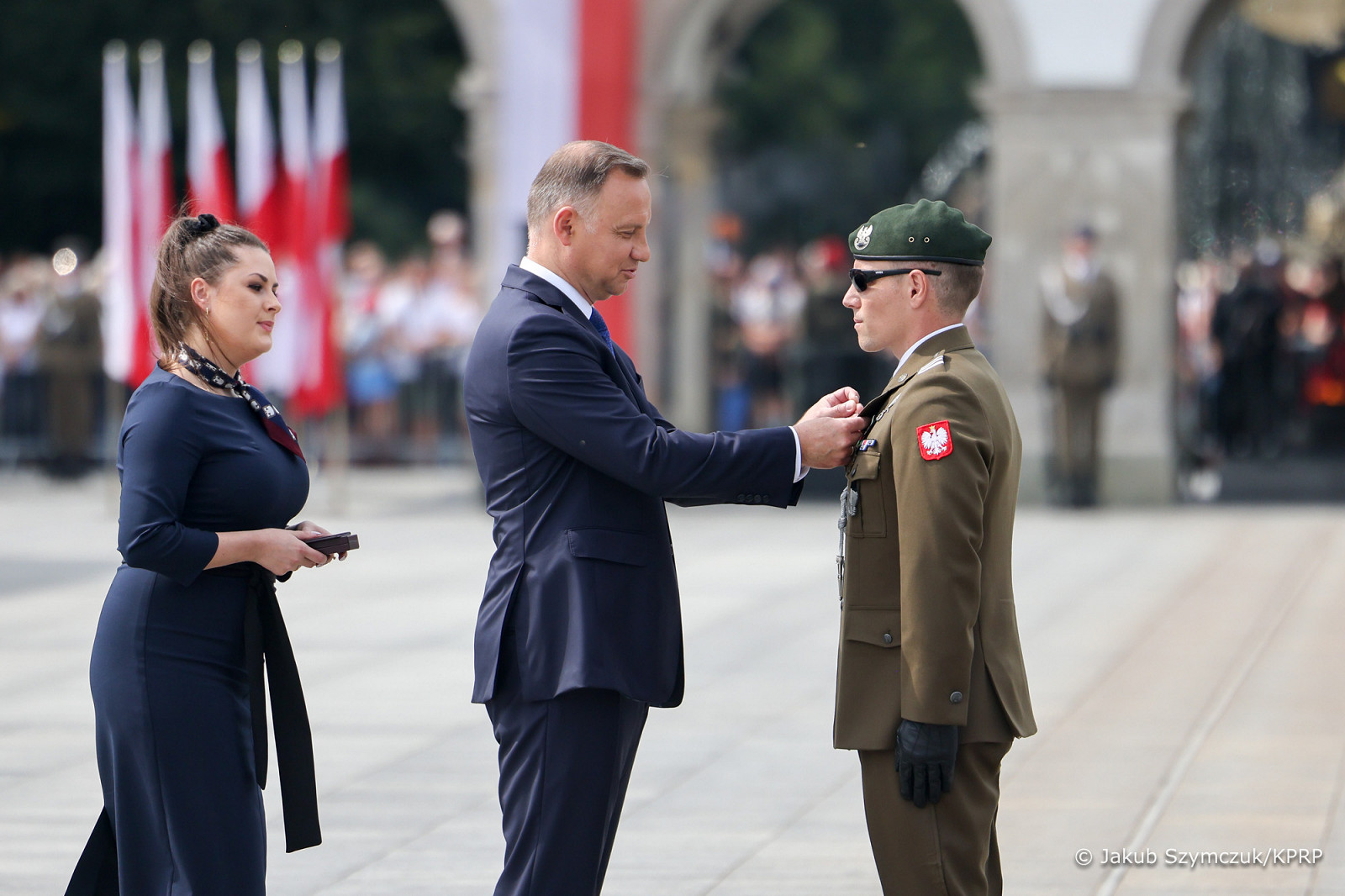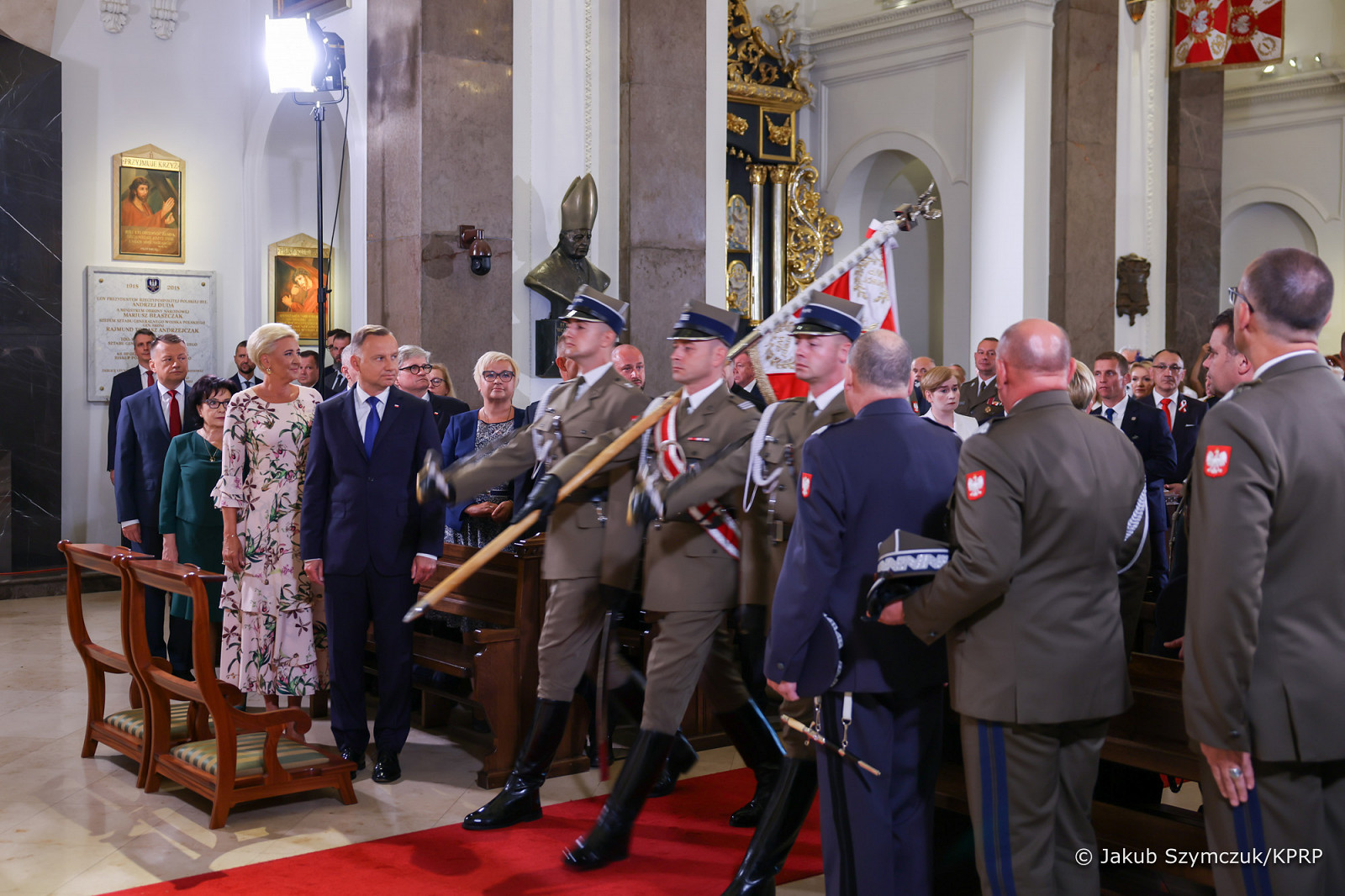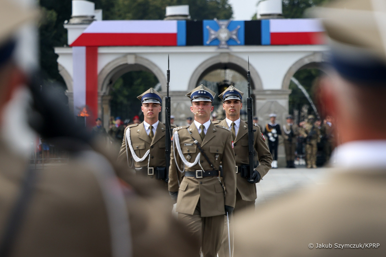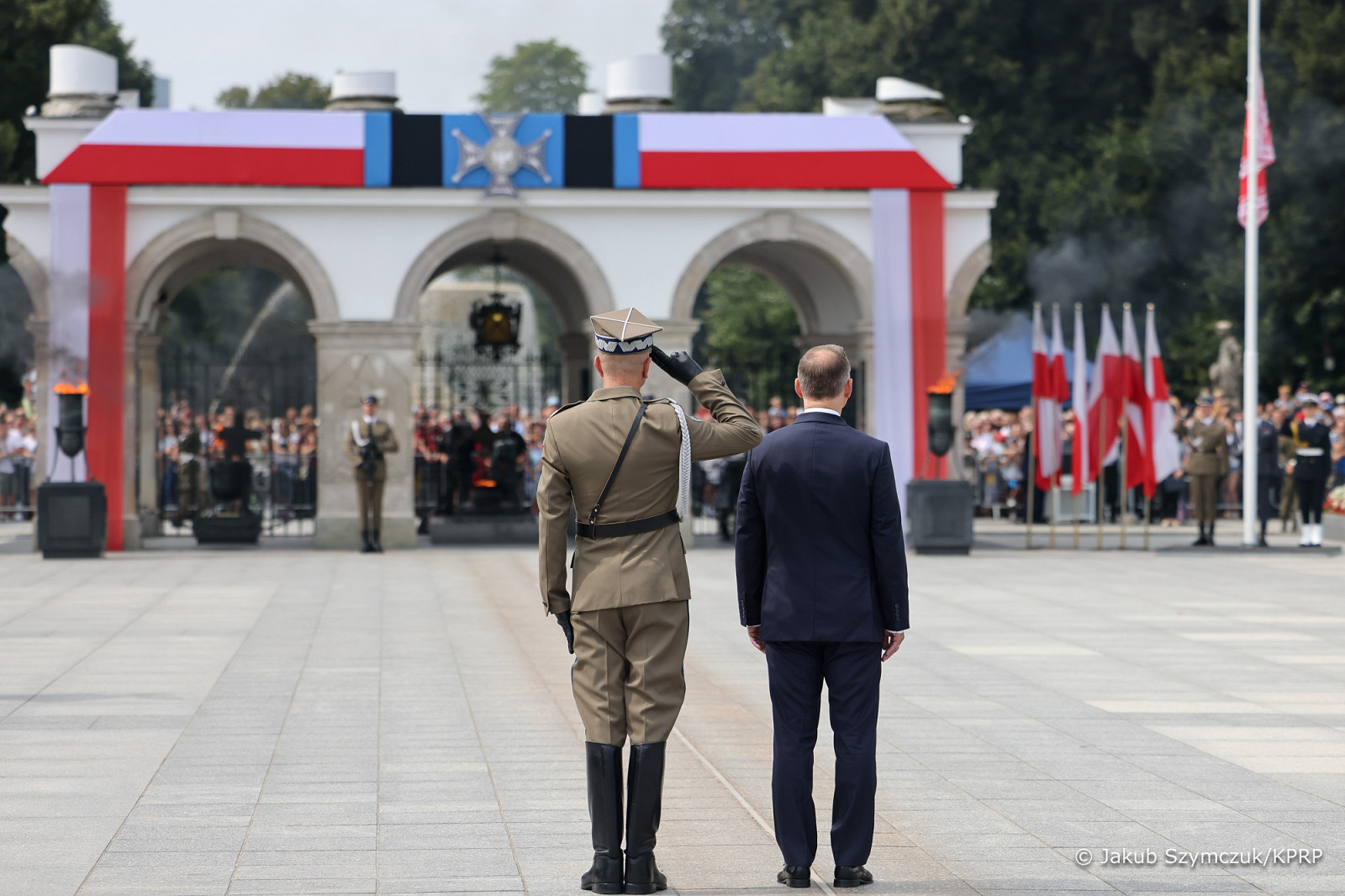 Prezydent RP, Zwierzchnik Sił Zbrojnych Andrzej Duda z Małżonką Agatą Kornhauser–Dudą wzięli dziś udział w uroczystej odprawie wart przed Grobem Nieznanego Żołnierza odbywającej się z okazji Święta Wojska Polskiego, obchodzonego na pamiątkę zwycięskiej Bitwy Warszawskiej w 1920 roku.