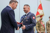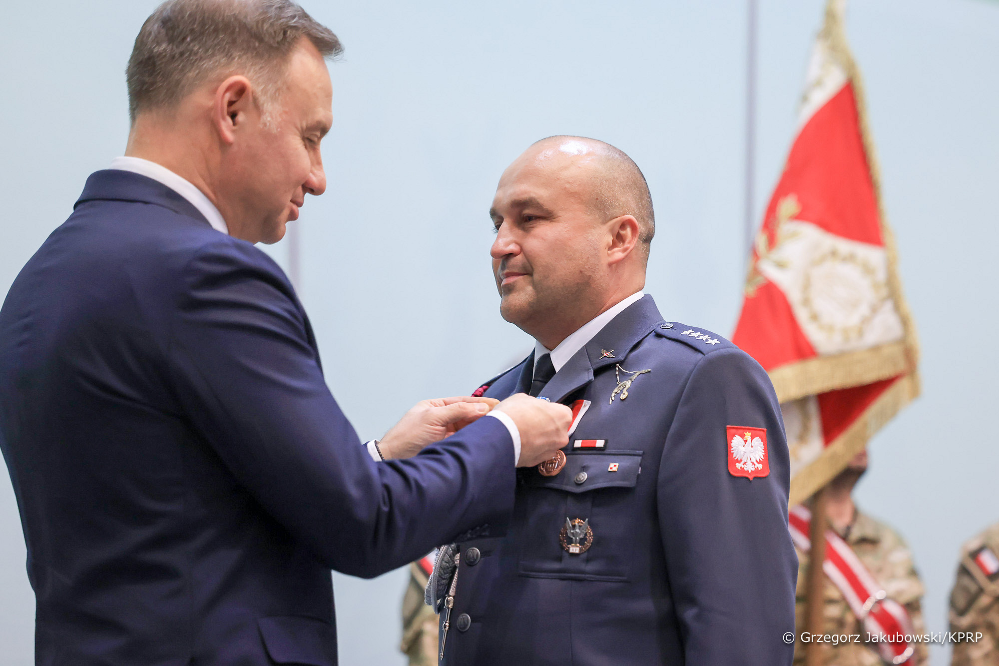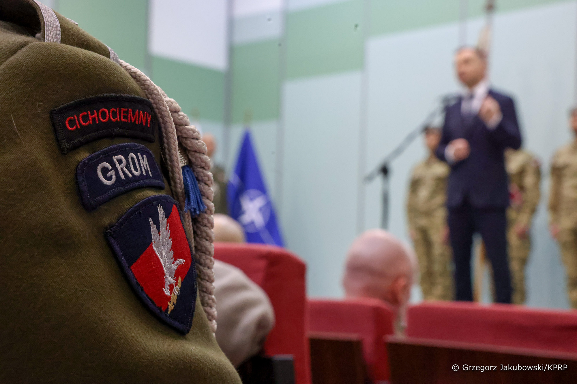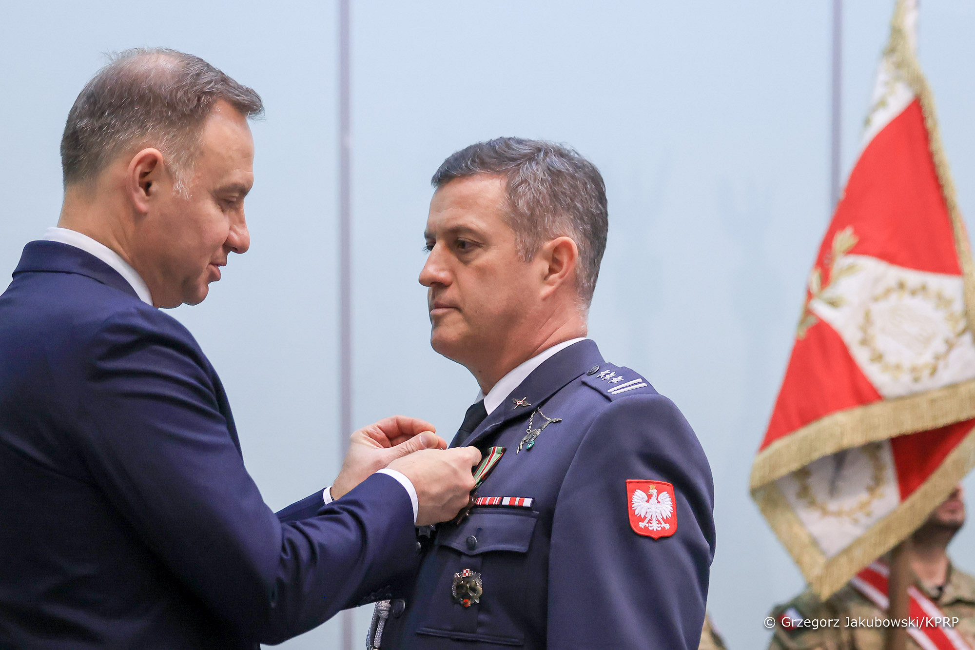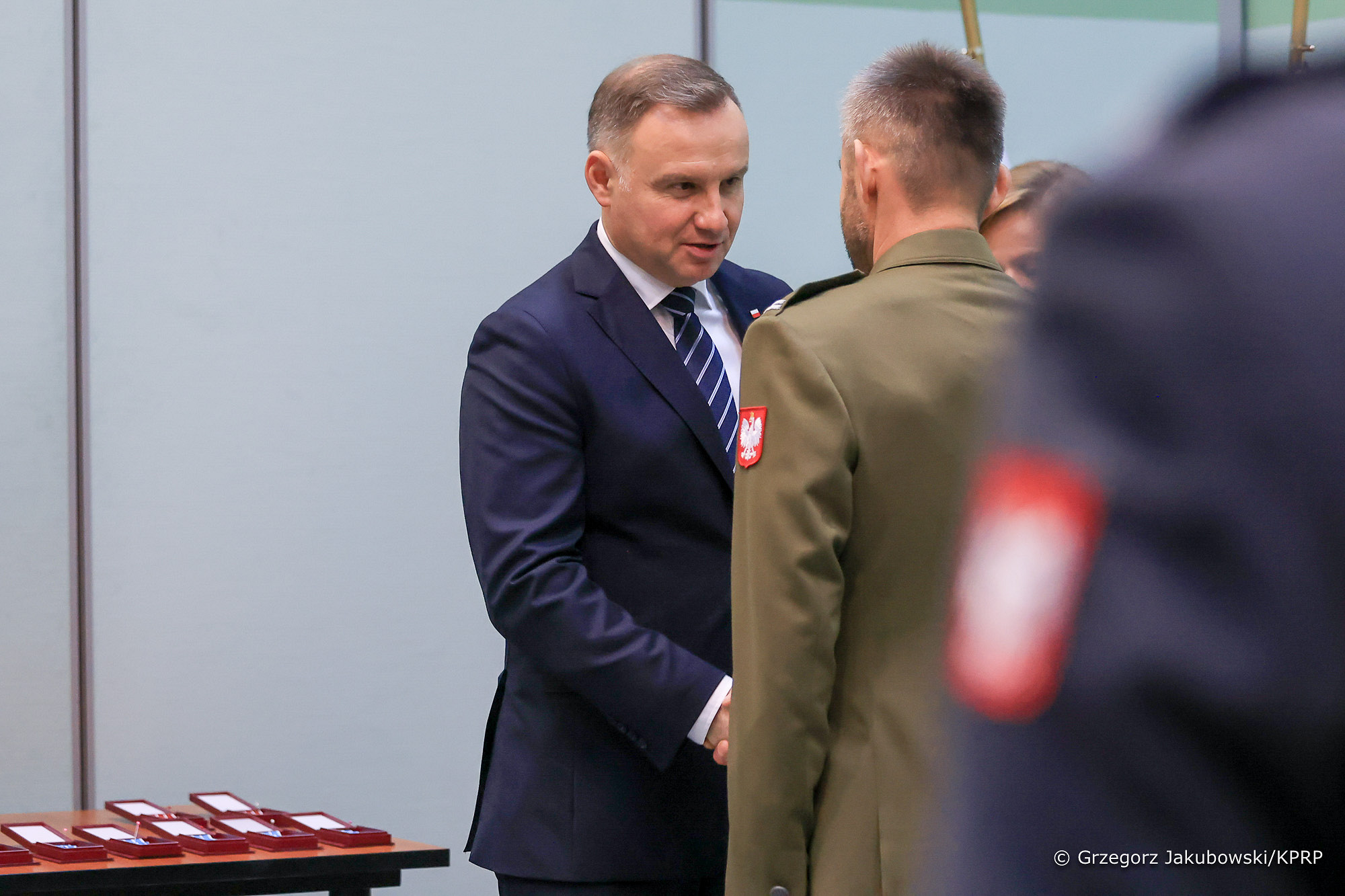 Prezydent RP Andrzej Duda podczas dzisiejszej wizyty w Jednostce Wojskowej GROM odznaczył żołnierzy Wojsk Specjalnych oraz pilotów wojskowych, którzy wzięli udział w operacji ewakuacji cywilnego personelu z Kabulu, w tym afgańskich współpracowników polskich kontyngentów wojskowych.