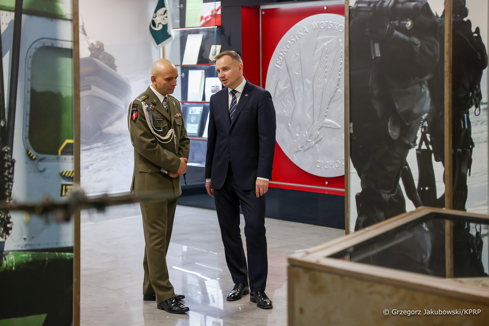 Prezydentowi podczas wizyty towarzyszyli Szef BBN Jacek Siewiera, minister Wojciech Kolarski, dowódca operacyjny Rodzajów Sił Zbrojnych gen. broni Tomasz Piotrowski, dowódca Komponentu Wojsk Specjalnych gen. dyw. Sławomir Drumowicz oraz dowódca jednostki GROM płk Grzegorz Mikłusiak.