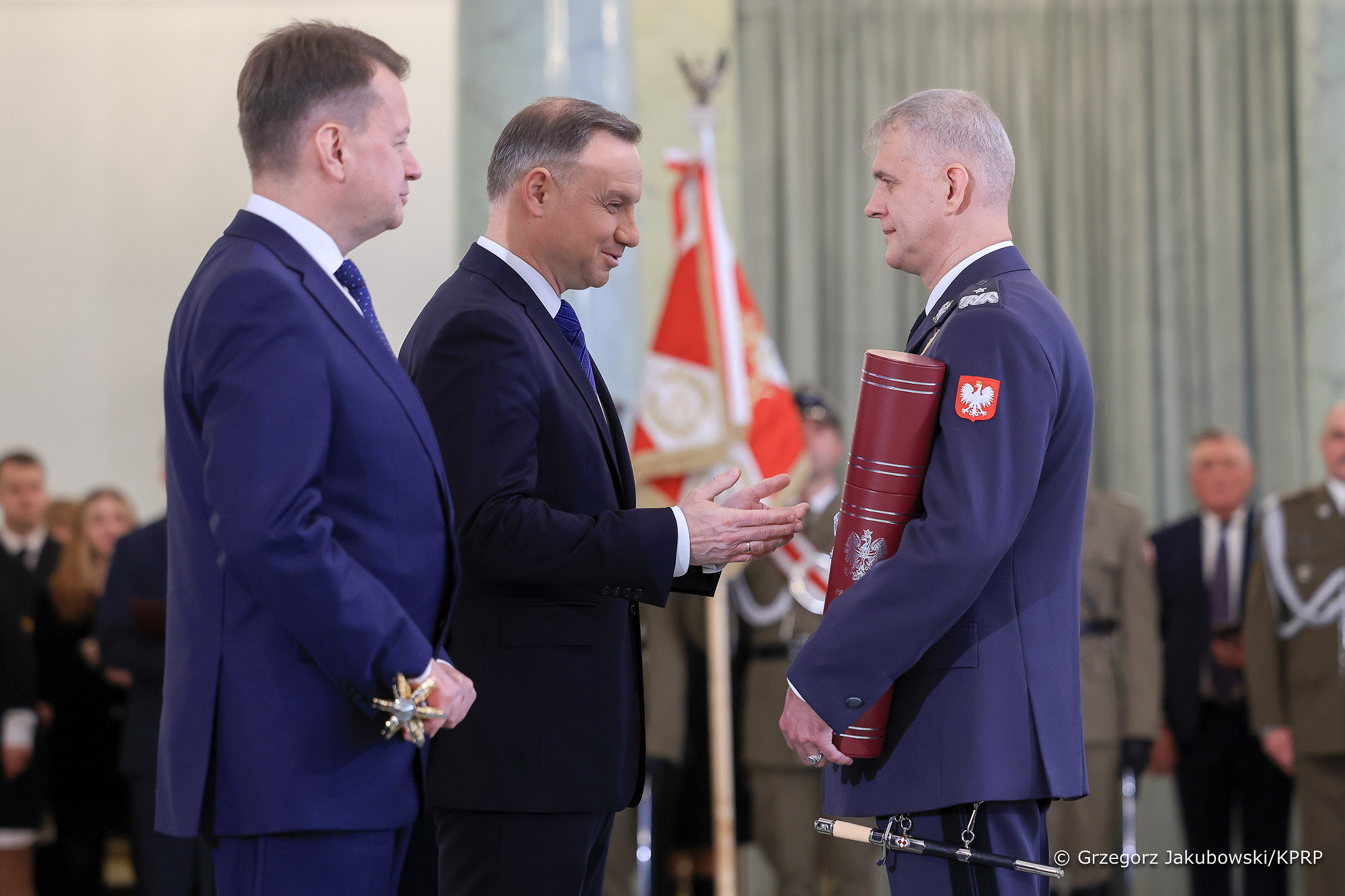 – Mamy dzisiaj wojnę tuż za naszą granicą. Mamy dzisiaj realne, namacalne niebezpieczeństwo. Mamy sąsiada, który nie waha się rzucać gróźb i pokazywać, że oczekuje tego, że inne państwa i narody będą mu podległe. Znamy wszyscy znakomicie naszą historię i wiemy, co to może znaczyć i jaka z tym jest związana odpowiedzialność – mówił Andrzej Duda podczas uroczystości w Pałacu Prezydenckim.
