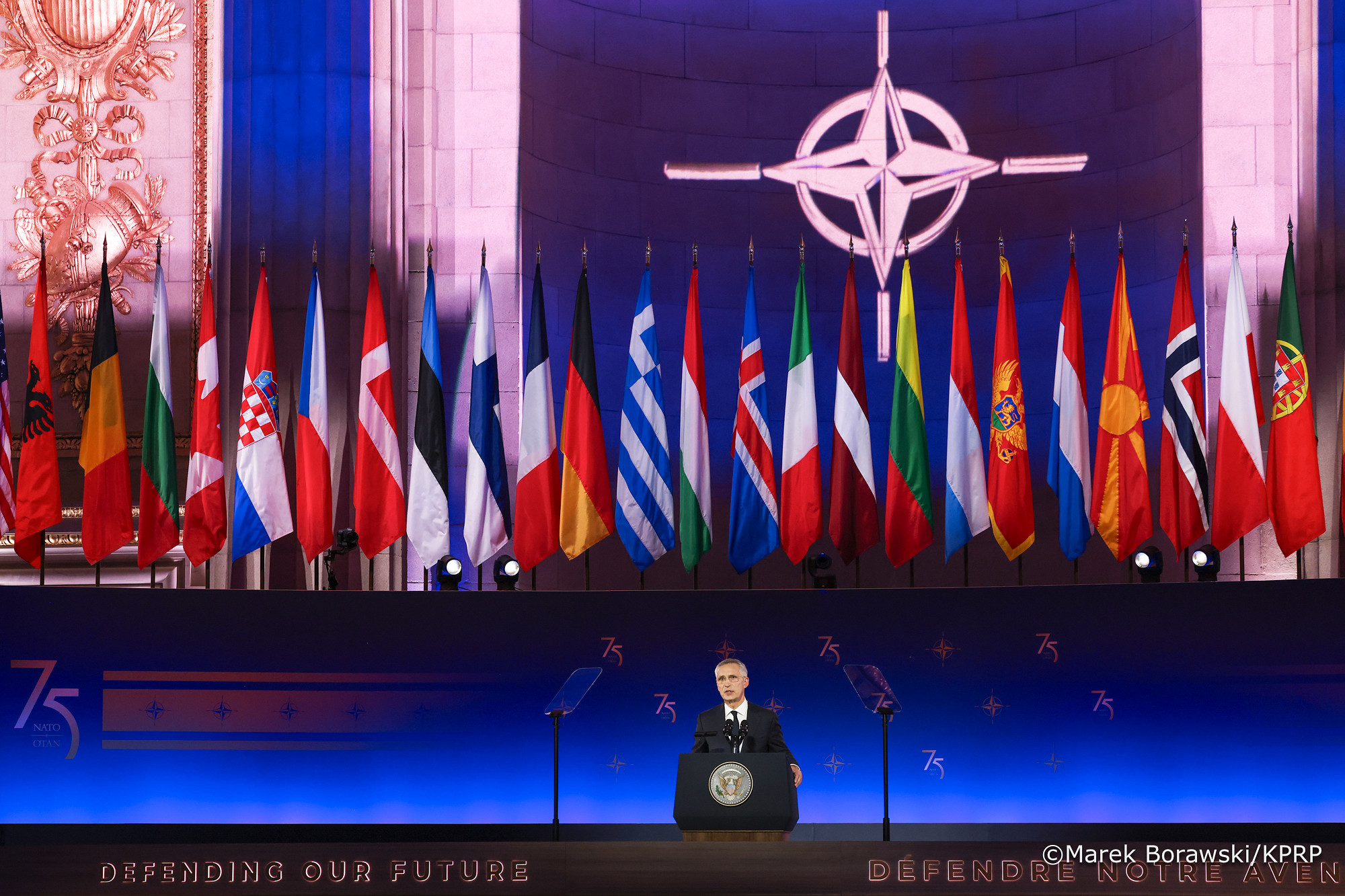 W pierwszym dniu szczytu NATO Prezydent Andrzej Duda i Agata Kornhauser–Duda wzięli udział w uroczystości z okazji 75. rocznicy podpisania Traktatu Północnoatlantyckiego. Zwierzchnikowi Sił Zbrojnych w Waszyngtonie towarzyszy Szef BBN Jacek Siewiera.